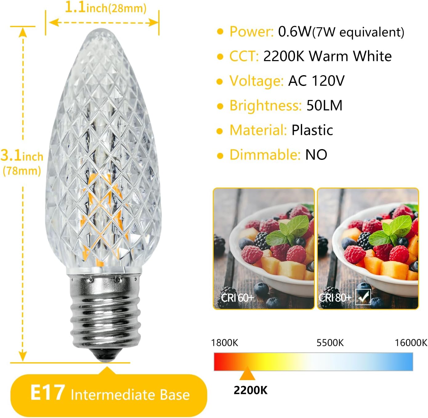 | Color Temperature | 2200 Kelvin |