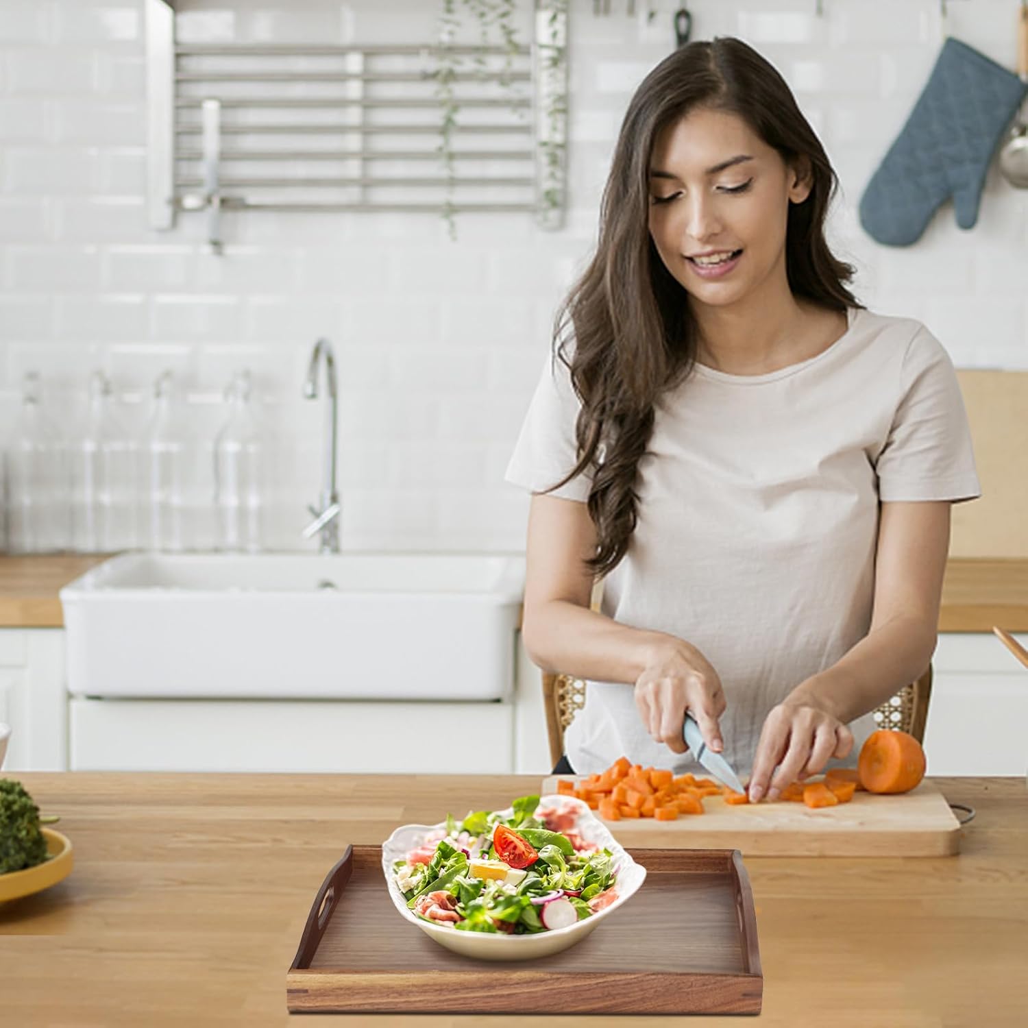 16.5 x 12 Inches Shape: Rectangle Material: 100% solid black walnut wood Color: Beautiful chocolate brown (The color varies according to the amount of wax oil used on the wooden tray)