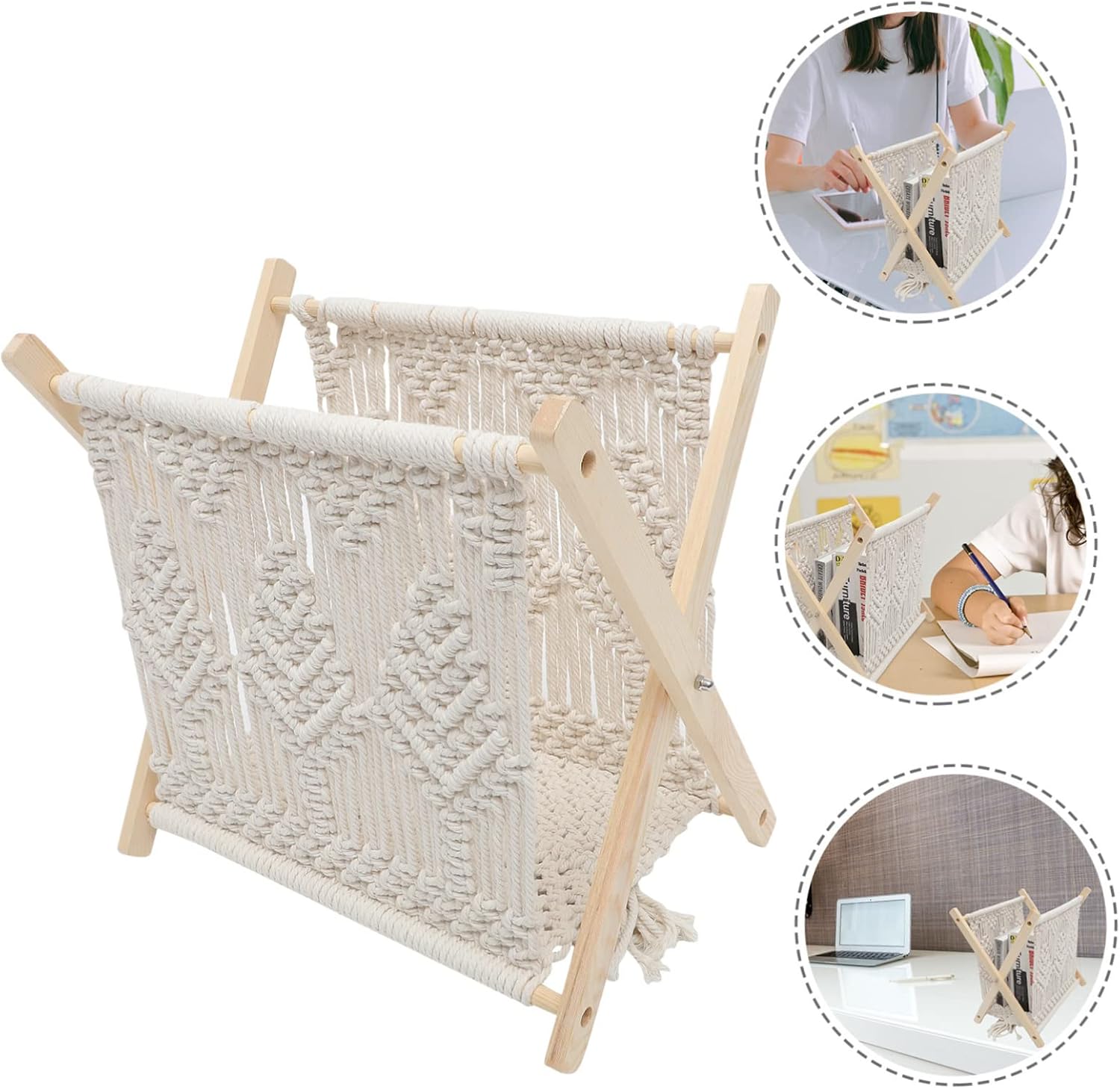 Package Include 1 x storage rack Features - Size: 37.00X26.00X38.50cm;/14.54X10.22X15.13in; office magazine holder - Color: Beige magazine storage basket - Material: Wood, cotton rope, iron rustic storage basket - It features a compact stand design, so it is easy to place on a table or table small magazine holder. - Simple and modern shape that looks great on any table. Suitable for different indoor style collocation home storage basket. - Come with standing holder, strong and adjustable, can stably stand and firmly hold your things, convenient to use and easy to store holder. - Save space for places with small space. Match your room decoration style magazine display stand. - for holding newspapers, magazines, cookbooks, idol albums, menus, etc large magazine holder.Goods Descriptionmagazine rack holder Meanwhile, it owns a simple but attractive appearance design.magazine storage basket It would be your best home decor for you.magazine storage rack We adopt high-end quality, can keep it for a long time.basket for magazines If you are looking for a special storage rack with reliable quality and , I will tell you that our rack will be