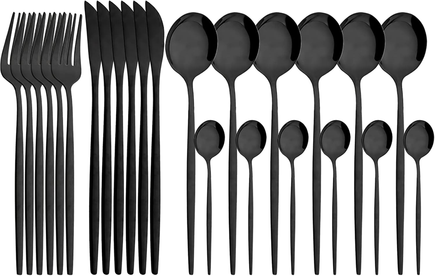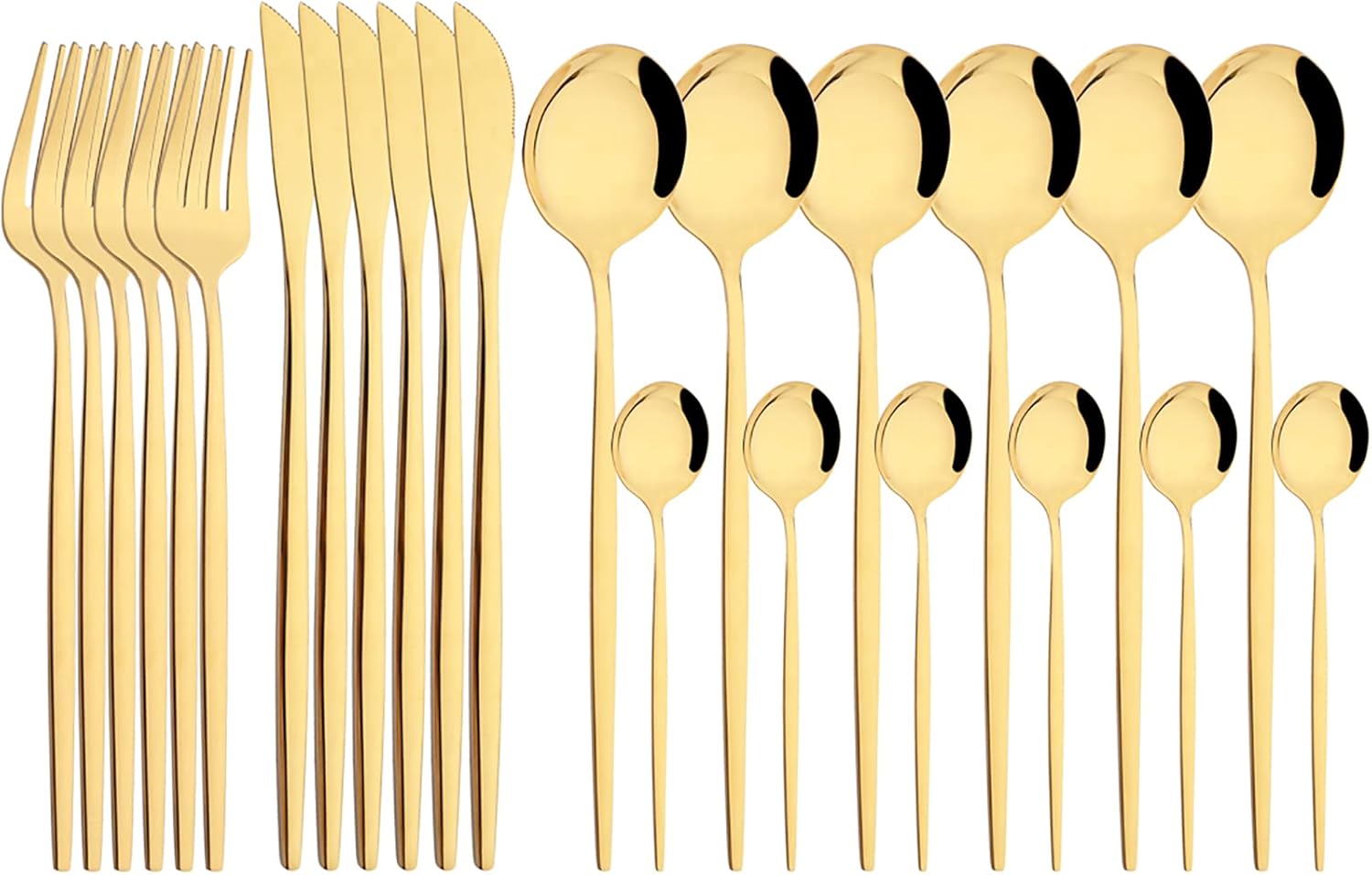 Color:Black Gold Why Choose Us? :) * Made of 18/0 Stainless Steel. * Safe: Food grade, lead free and rust free. * Dishwasher safe, easily clean up by hand-wash. * Many colors are available for you to choose. * Best Gift for Wedding Birthday Festival Housewarming product size Knife Dimensions: Length: 8.66inch Weight: 40g Dinner Spoon Dimensions: Length: 8.26inch Weight: 40g Tea Spoon Dimensions: Length: 5.11inch Weight: 10g Dinner Fork Dimensions: Length: 8.46inch Weight: 30g Using Instruction 1. Please wash the cutlery set with warm soapy water before first using to wash off any processing residue left from manufacturing. 2. Please clean and dry the flatware set after using for your healthy daily use, and store in dry place for its durability. 3. Please use soft towel to clean the set; Do not use iron wire to destroy their smooth surface. Thank you for shopping in our store. If you have any problems, please feel free to contact us. We will try our best to satisfy you. Thank you! Happy shopping!