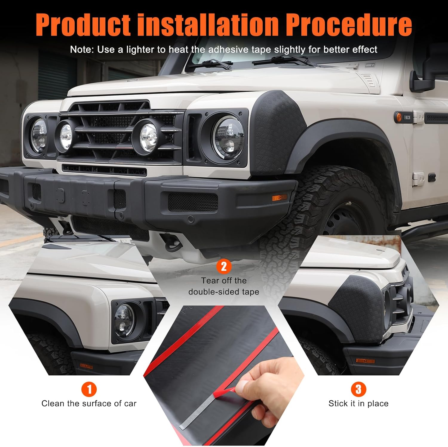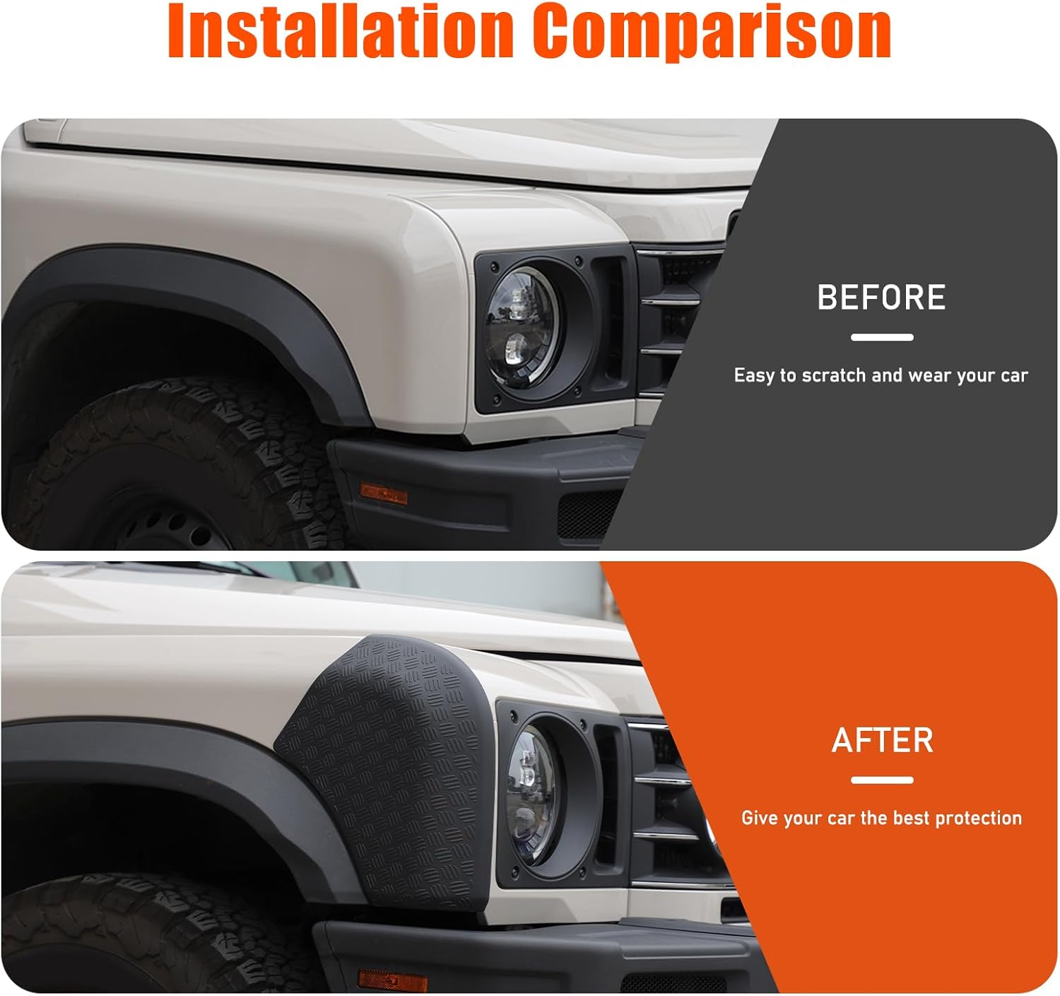 Applicable Models:Compatible with INEOS Grenadier Station Wagon/ Quartermaster 2020 2021 2022 2023 2024 2025.Please make sure your car model matches this Cowl Guards before ordering.Specification:Product Condition: Brand New & High QualityPacking List:2PCS Headlight Side Armor Cowl GuardsMaterial: ABSColor: Matte BlackFeatures:Made of high quality ABS, sturdy and durable.Simple design, provide a fashionable decorative style for your car.Cowl Guards can prevent the hood side body corner from being scratched.