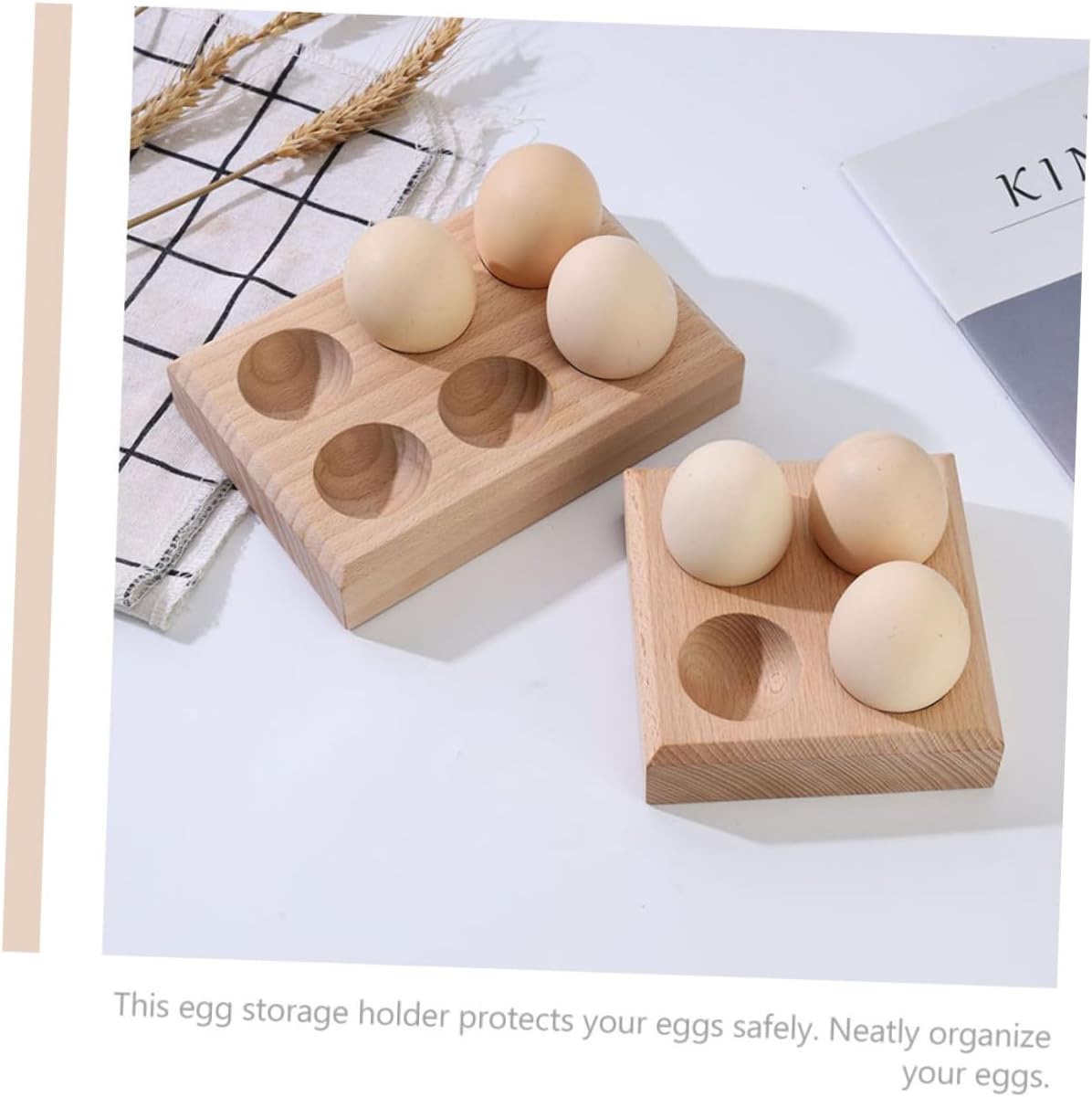 Package List 3 x Egg HolderCharacteristics -Specification: 4 compartments kitchen egg holding stand-Color:Khaki egg protective holder-Material:Wood egg holder-Size:11.00X11.00X3.00cm/4.32X4.32X1 egg placing holder.-Perfect size is designed for home or egg store use, bring you a big convenience wooden egg holder.-Features the flat bottom, which ensures the stability when placing on the desktop home kitchenware.-The egg holder is made of , which can withstand the long-term use egg holding container.-Fine process, smooth hand feeling, very easy to use, practical and convenient egg tray for refrigerator.-Creative egg tray comes with the compact size without taking up too much space, reusable can save your money egg storage tray.Goods Descriptionwooden egg holder It is a wonderful gift for your friends who like cooking.wood egg holder The egg holder is made of , the simple egg storage stand is a wonderful addition to a kitchen or dining room decor.deviled eggs Fine craftsmanship, good texture, high grade material, sturdy and durable