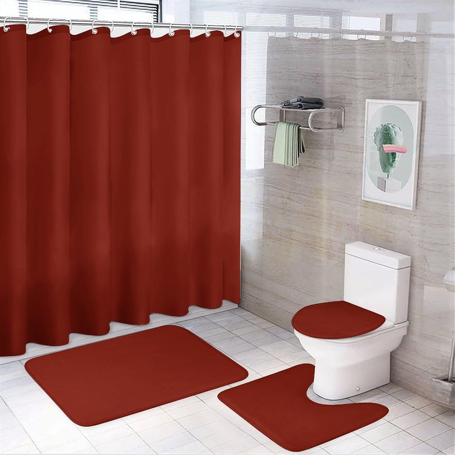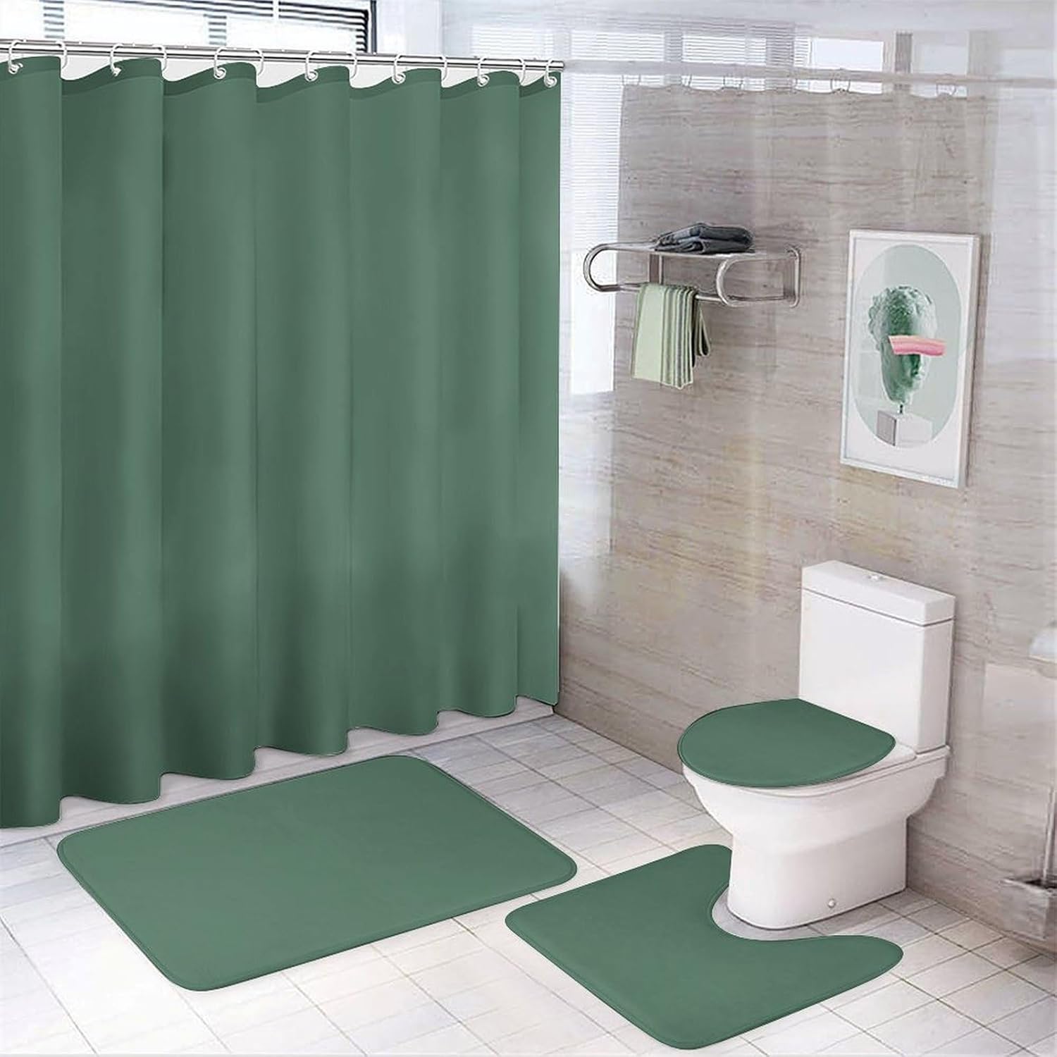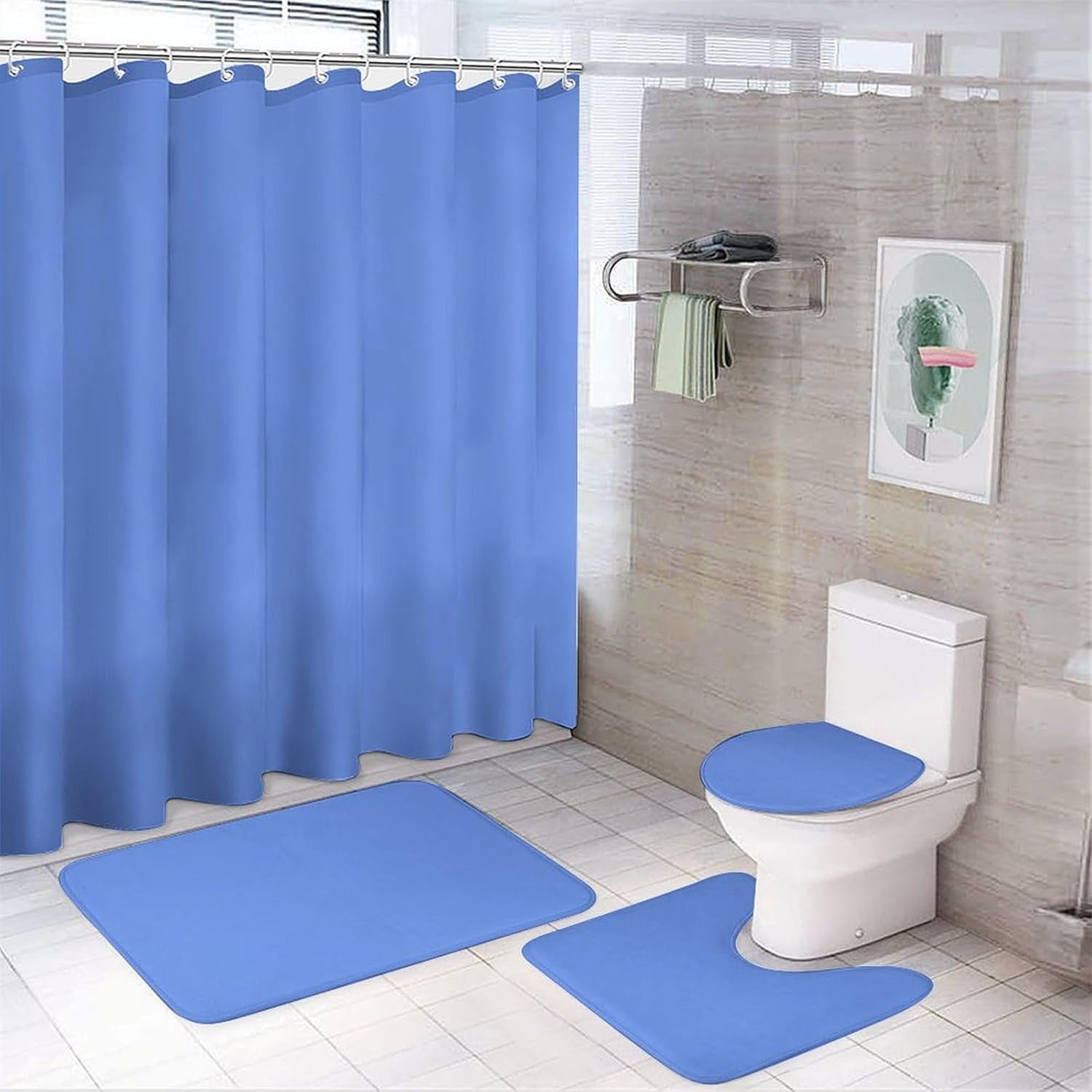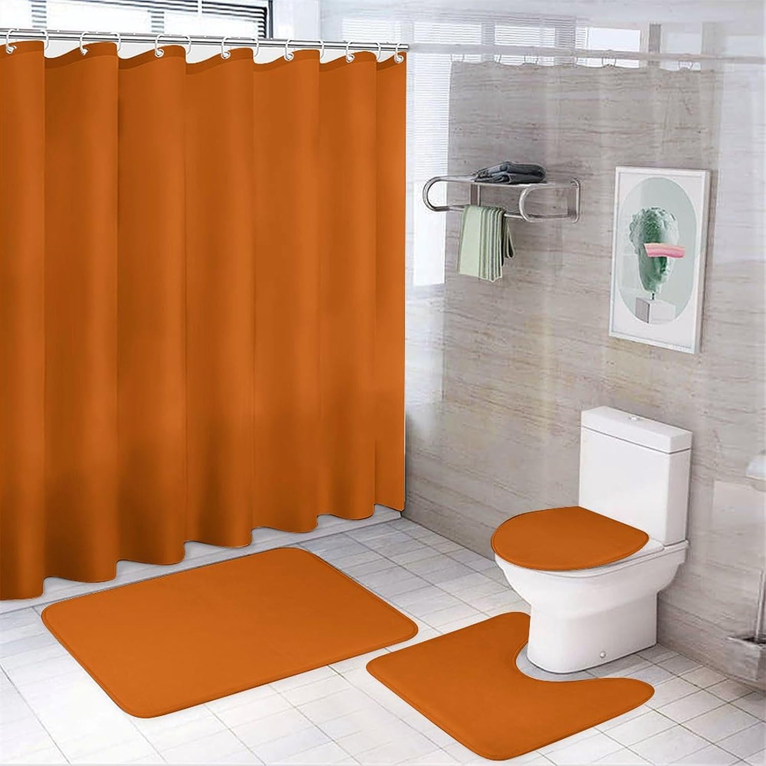 Our shower curtain sets use the latest high-definition printing technology. Elegant pattern design combined with good workmanship will bring you an excellent bathroom experience. Excellent choice for your bathroom Non-Slip Rugs, Bath U-shaped Mat, Toilet Lid Cover are made of flannel.They have strong water absorption, can effectively avoid slippery.You will feel soft and comfortable when you step on the mat.Also they are easy to clean and maintain. Package Include: 1 × shower curtain 1 × bathroom mat 1 × toilet cover 1 × U-shaped carpet 12 × plastic hooks Size Information: shower curtain: 72*72 inches Bathroom mat: 19.7*31.5 inches Toilet cover: 13.8*17.7 inches U-shaped carpet: 15.7*19.7 inches Warning: 1. Due to the light and screen difference, the color may be slightly differ from the pics. 2. Please allow 1-3cm difference due to manual measurement.
