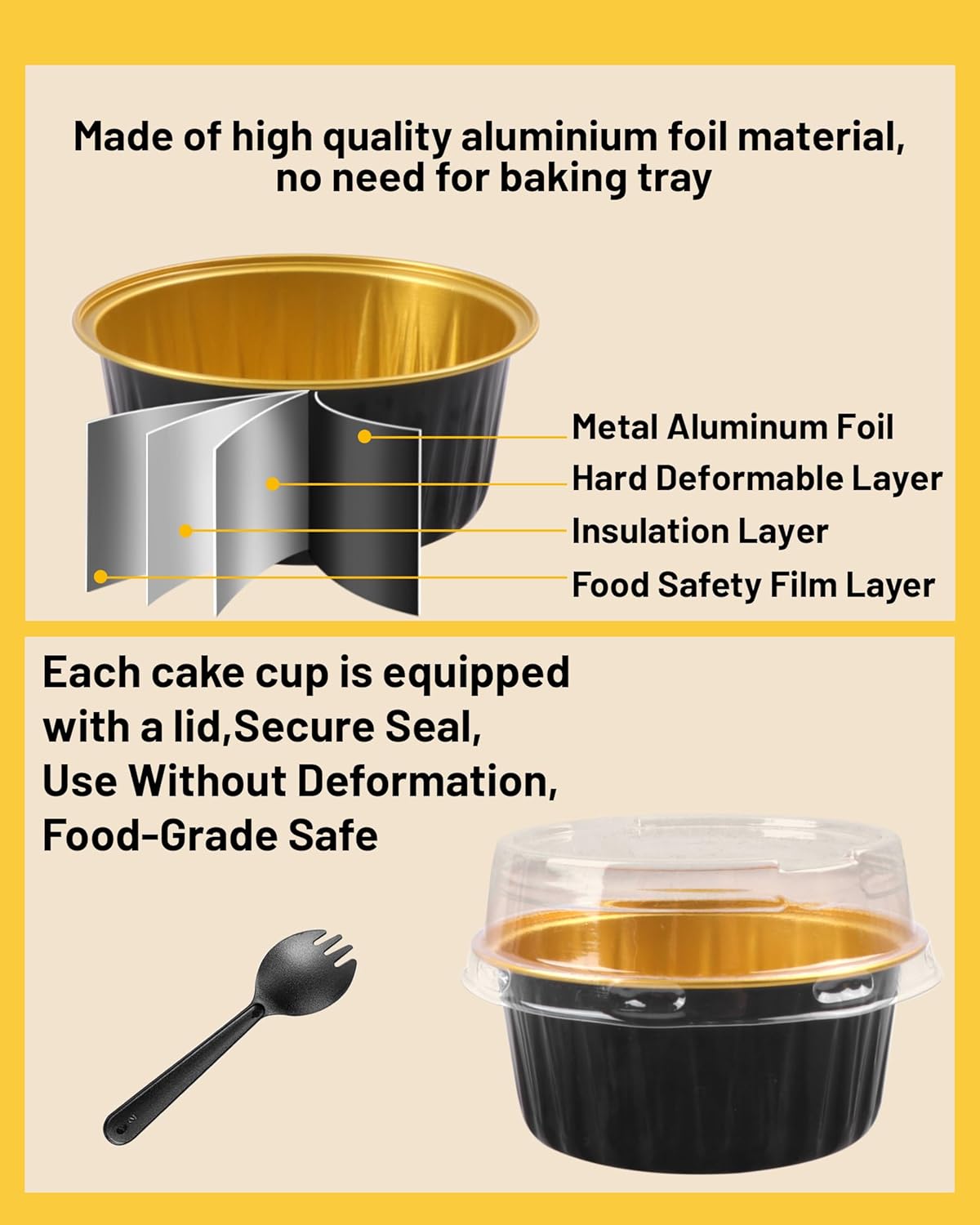 6.8 oz Rectangular Mini Baking Pan with Lid,50 Pack of 5 oz Round Aluminium Foil Cake Baking Cups-Black