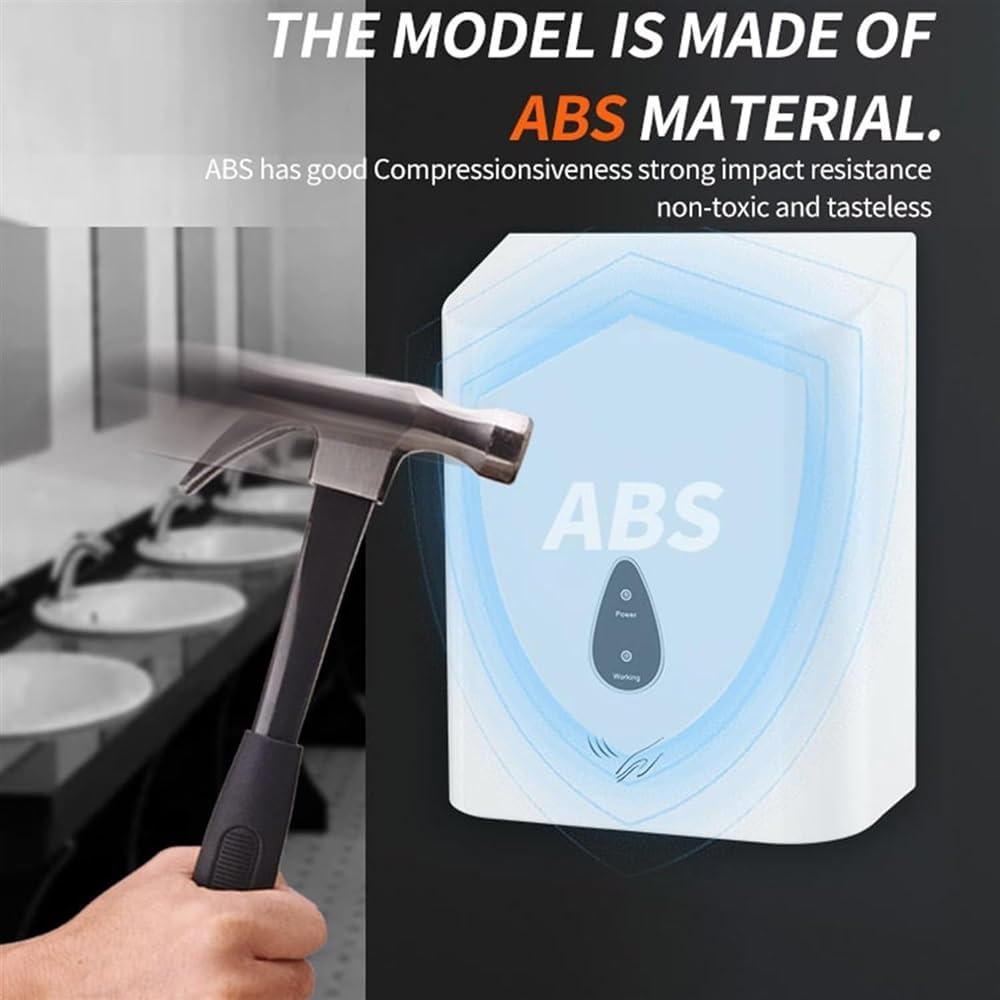 Features: 1. There is no need to touch the dryer with your hands, so it is extremely hygienic to use. 2. Switch the heating switch in winter and summer to enjoy the warm air. 3. The high-power motor is safe and low-noise, and combined with the turbocharged fan, it has good performance and is more durable. 4. Timeout protection, overcurrent protection, short circuit protection, and overheating protection. Specification: Name:Hand dryer Rated power: 900W Rated frequency: 50-60HZ Product material: ABS engineering plastic Product wind speed: 15M/S Product noise: 60db Product technology: baking paint Product size:22.5X13.2X288CM Weight:2.5KG Packing list: Hand dryer*1 Instruction manual*1 Notes: 1. Please allow 2-3cm deviation due to manual measurement. Thank you for your understanding. 2. Different monitors are calibrated differently, and the color of the product shown in the photo may be slightly different from the actual product. Please refer to the actual product.