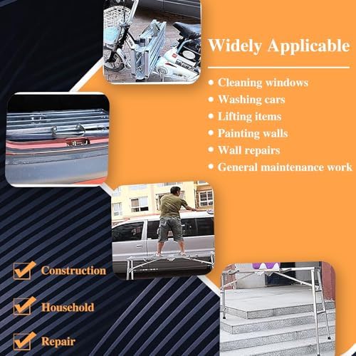 Industrial scaffolding can get you where no man has gone before, paint the side of a house or rescue a cat from a tree like the firefighter in a corny family drama. The platform provides maximum support for you and your tools. Package Contents: 1 × Scafolding Specification: Material: Steel Size: 100x30cm(39 3/8"x11 3/4") , 120x30cm(47 1/4"x11 3/4") , 140x30cm(55 1/8"x11 3/4") , 160x30cm(63"x11 3/4") , 180x30cm(70 7/8"x11 3/4") , 140x40cm(55 1/8"x15 3/4") , 160x40cm(63"x15 3/4") , 180x40cm(70 7/8"x15 3/4") , 200x40cm(78 3/4"x15 3/4") Adjustable Height Range:4868cm(18 7/8"26 3/4") ,6090cm(23 5/8"35 3/8") ,90150cm(35 3/8"59") ,80130cm(31 1/2"51 1/8") ,90130cm(35 3/8"51 1/8") ,70110cm(27 1/2"43 1/4") ,80120cm(31 1/2"47 1/4") ,90130cm(35 3/8"51 1/8") ,100140cm(39 3/8"55 1/8") Feature: Adjustable and foldable design, portable and widely used No laborious installation is required, just open it and use it. Sturdy steel frame ensures high loadbearing capacity. Solid triangular structure ensures safe use. Can be used for indoor and outdoor decoration. Warm Tips: When using heightadjustable scaffolding, it is necessary to wear gloves due to welding marks on the surface of the industrial products, pay attention to the safety of climbing and preventing falls, and regularly check and maintain to ensure safety. Efficient Customer Service: In the process of receiving or using the product, if you encounter any problems, please feel free to contact us. We value your comments and offer nice solution for you.
