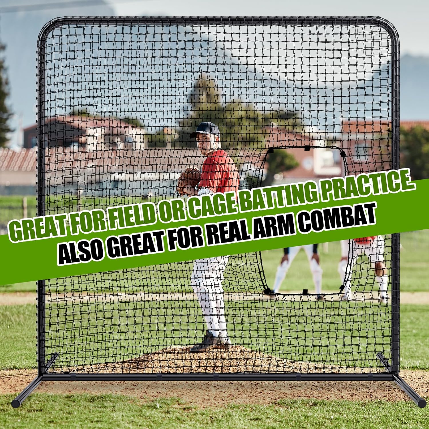 Features: Versatile Equipment Range: This square protector screen is ideal for baseball and softball players of all levels. It provides essential protection during pitching and hitting practice, helping improve training safety and performance. Effortless Assembly: This screen is easy to install and disassemble, making it convenient for both permanent set-ups and mobile practice sessions. With an emphasis on ease of use, transform any space into a skilled training ground in minutes. Specifications: Material: galvanized steel, polyethylene Color: black Size: about 7ft x 7ft Package includes: 18 x Steel frames 1 x Baseball training screen 1 x Storage bag 4 x Ground stakes Notes: Manual measurement, please allow slight errors on size. The color may exist a slight difference due to different screen displays. Small parts included, please keep them away from little kids to avoid swallowing risk.