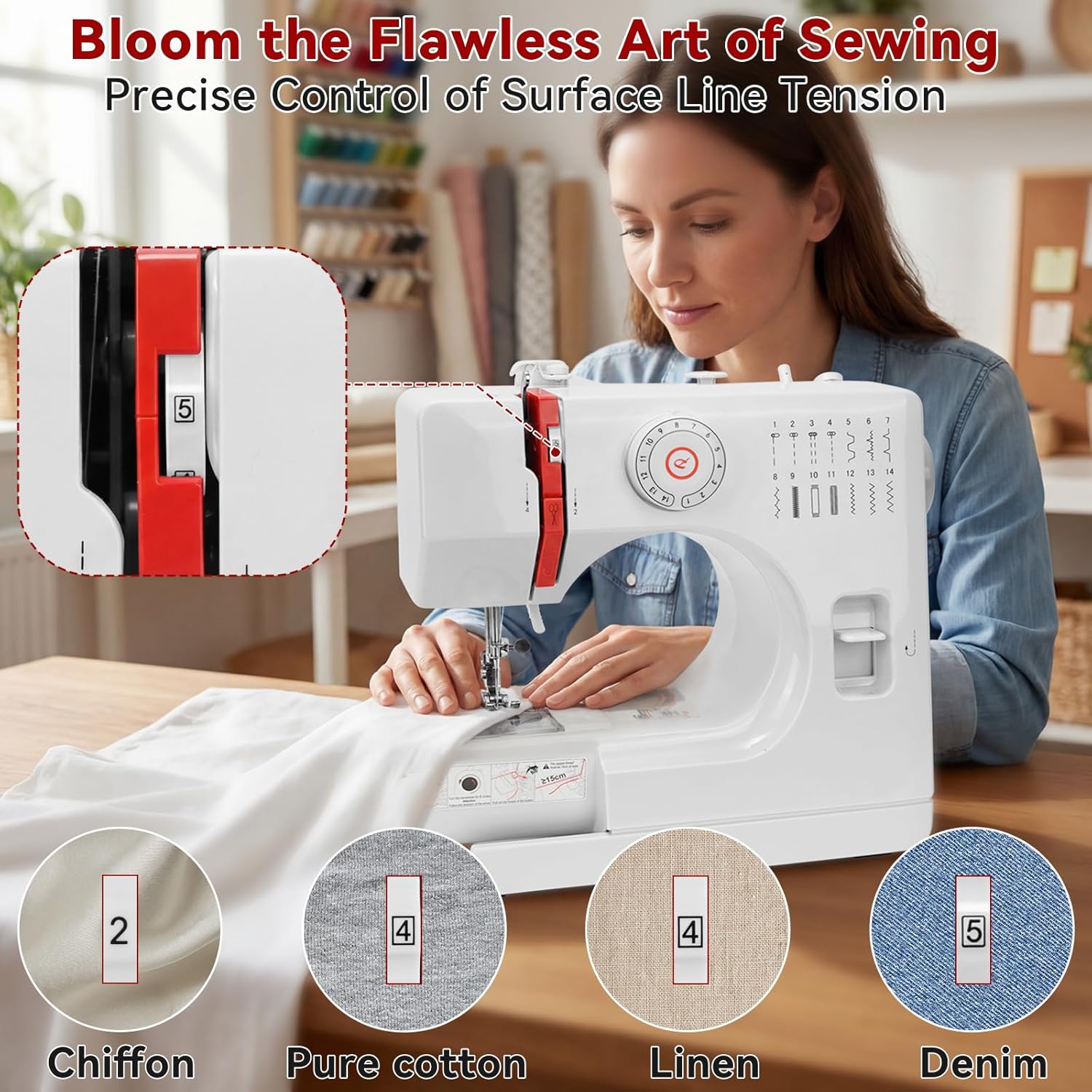 | Included Components | Sewing Machine, Power Adapter, Foot Pedal, Bobbins, Needles, Thread Spool Caps, User Manual |