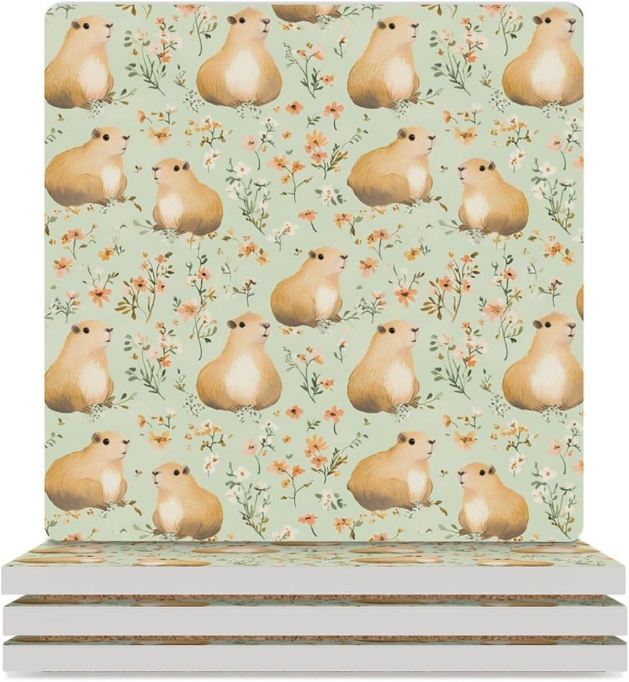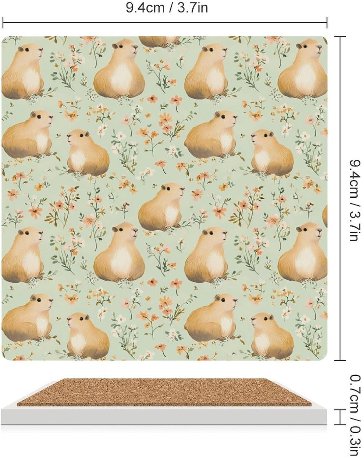 Cute Printed Absorbent Ceramic Coaster for Drinks Funny Coasters with Cork Base Suitable for Kinds of Mugs, Cups, Prevent Tabletop Wear And Scratches, and is Easy to Clean