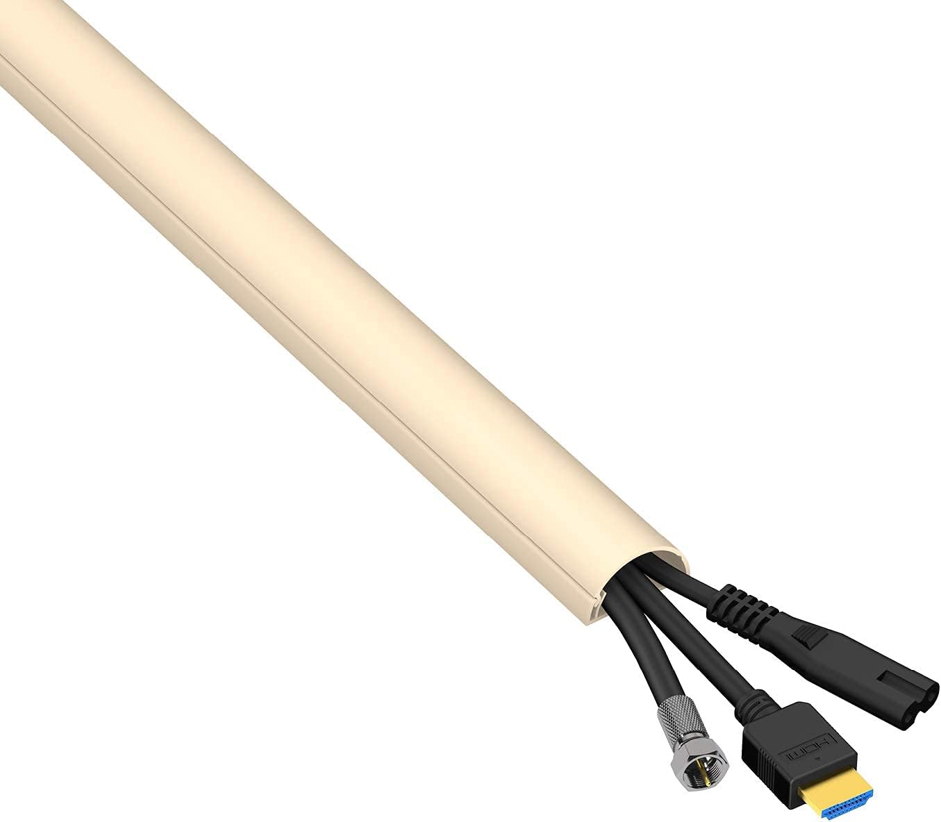 D-Line Medium (1.18x0.59in) Cable Raceway Bundle - Beige D-Line Medium Cable Raceway is great for covering cables on open walls i.e. hiding cables from wall mounted TVs or to cover cords above baseboards, with the profile scaling to appear as the natural top section of the baseboard. Half round profile of D-Line Raceways subtly blend with décor... providing a neat solution to cover cables on walls. Cable Hider lengths are also fully paintable for the perfect finish, simply key the surface with a fine sandpaper & apply two coats of paint. One-piece design & patented click lock lid of D-Line Raceway lengths enable easy handling and installation... no prior DIY or electrical know-how is required to install. All D-Line Cable Raceway lengths are supplied with strong self-adhesive backing for easy peel & stick installation (take care when positioning lengths as adhesive backing does create a strong bond.) Lengths can be drilled & screw-fixed for added stability. Clip-Over Accessories have rear grip tabs which fit securely between the gap left from adhesive backing, design forgives any imprecise cuts or measurements. Smooth-Fit Accessories internal shoulders fit securely under, providing a smooth flush finish. 12 Accessories included in bundle (use raceway accessories to cover cords around a variety of popular angles.) Each Medium Cable Raceway bundle includes: 5x 1.18" (W) x 0.59" (H) x 39" Lengths (Black) - 16.4ft Total Coverage 2x Clip-Over Flat Bends - change direction by 90° on flat surfaces 2x Clip-Over Internal Bends - join lengths around 90° inside corners 2x Clip-Over External Bends - join lengths around 90° outside corners 1x Clip-Over Equal Tees - join 3 lengths of the same profile 3x Smooth-Fit Couplers - join 2x lengths of the same profile on flat surfaces 2 x Smooth-Fit End Caps - neatly finish open ends