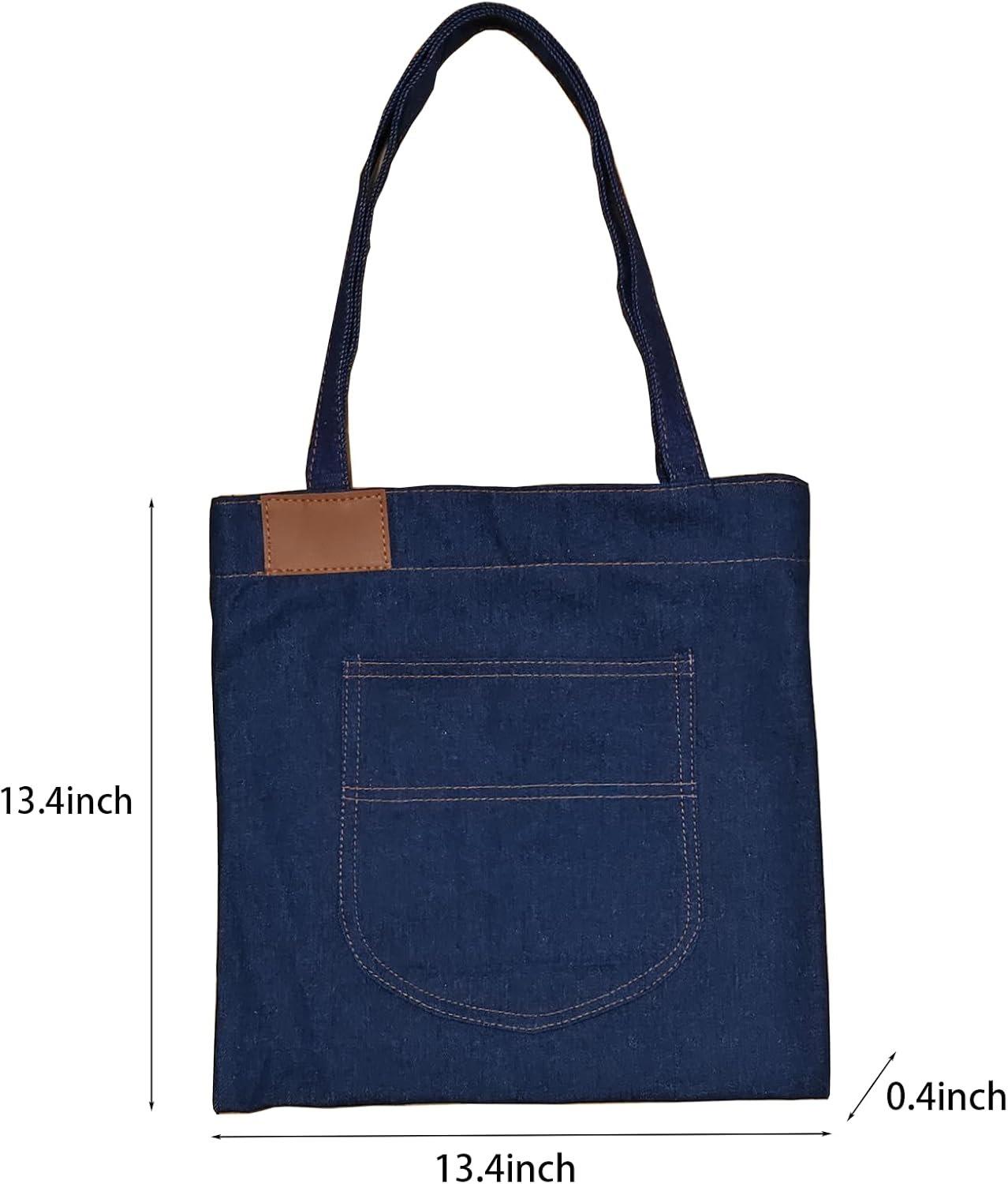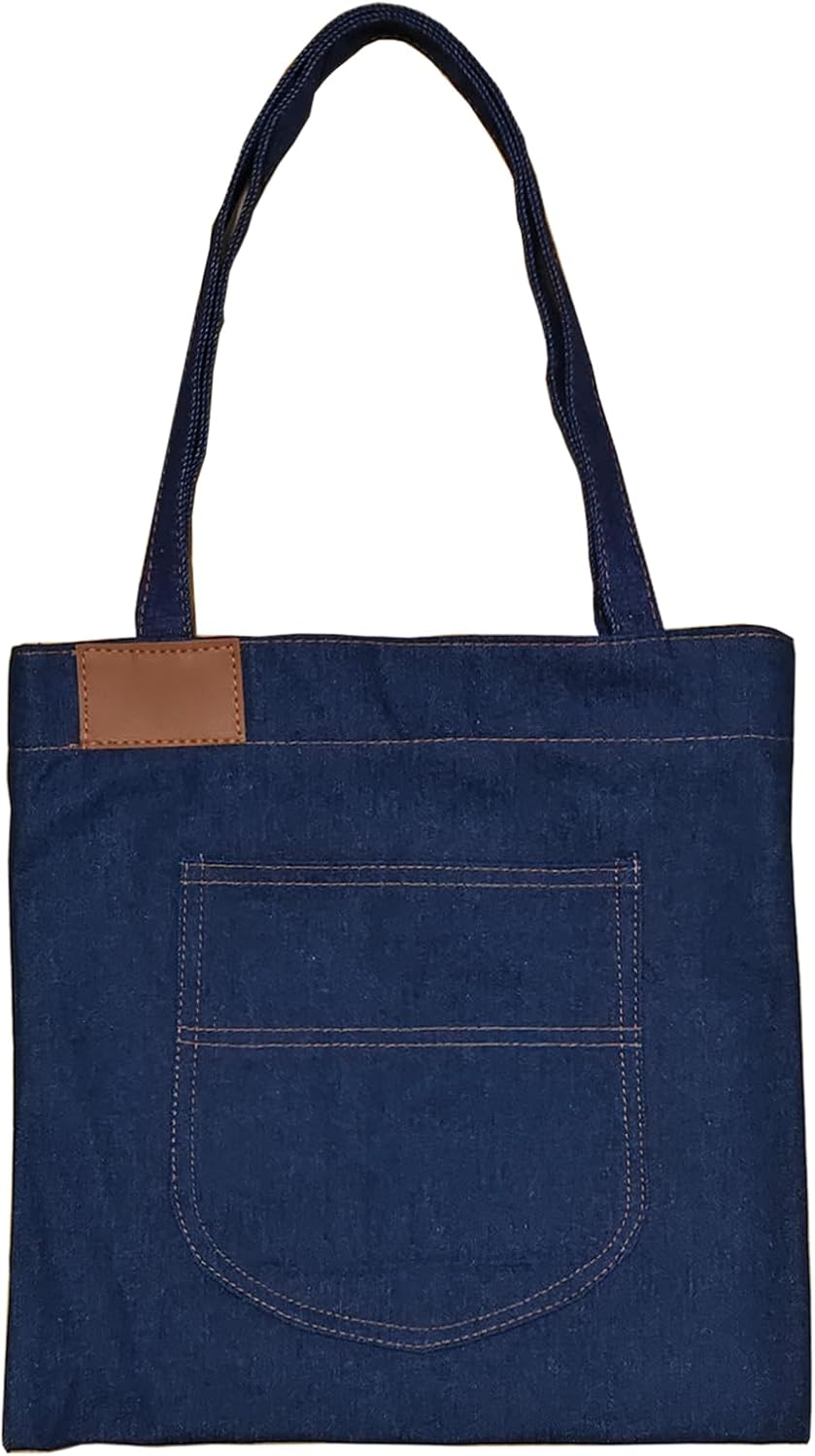 Elevate your everyday style with this classic navy blue denim tote bag, perfect for shopping trips and daily errands. The spacious main compartment easily accommodates all your essentials, while the convenient front pocket provides quick access to frequently used items. Crafted from durable denim fabric, this versatile shoulder bag features contrasting stitching details and a brown leather accent patch that adds a sophisticated touch. The sturdy shoulder straps ensure comfortable carrying, even when the bag is fully loaded. A practical zipper closure keeps your belongings secure, making it ideal for work, shopping, or casual outings. The timeless design pairs beautifully with both casual and business attire, while the roomy interior has plenty of space for books, electronics, or daily necessities. This functional yet fashionable tote is an essential addition to any wardrobe, combining style with practicality for everyday use.