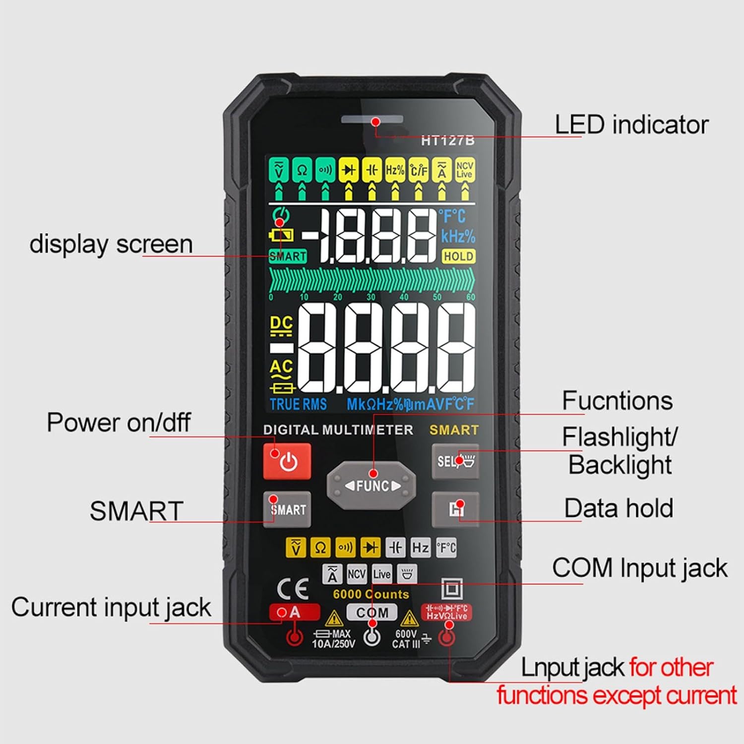 Digital Miniature Multimeter Voltages Current Resistance Capacitance Tester for Electrical Testing Electricians StudentsFeatures:The HT127B/HT127A digital multimeter a portable designing with precise digital display, making it ideal for various electrical testing needs.Featuring a lightweight and compacts build, this multimeter ensures easy portability; its high precise measurement provide clear readings with automatic ranges selection for user friendly operations.Perfect for electronic engineers, repair technicians, DIYer enthusiasts, and students who require reliabled electrical testing tool.Suitable for home circuit diagnostics, laboratory research, on site equipment maintenance, and educational training Crafted from duraility abs materials, this multifunctional tool is a essential addition to any toolkit, ensuring accuracy and convenience in every use.Specifications:Component:ABSSize: Approx.145x71.5x26mmColor:BlackStyles:HT127B/HT127APackage Includes:1 Set Digital MultimeterNote:1.Please allow 1-2cm errors due to manual measurement, make sure that you donot mind befores you order. 2.Due to the differences between different monitors, the picture may not reflect the actual coloring of the item.Thanks for your understandings.