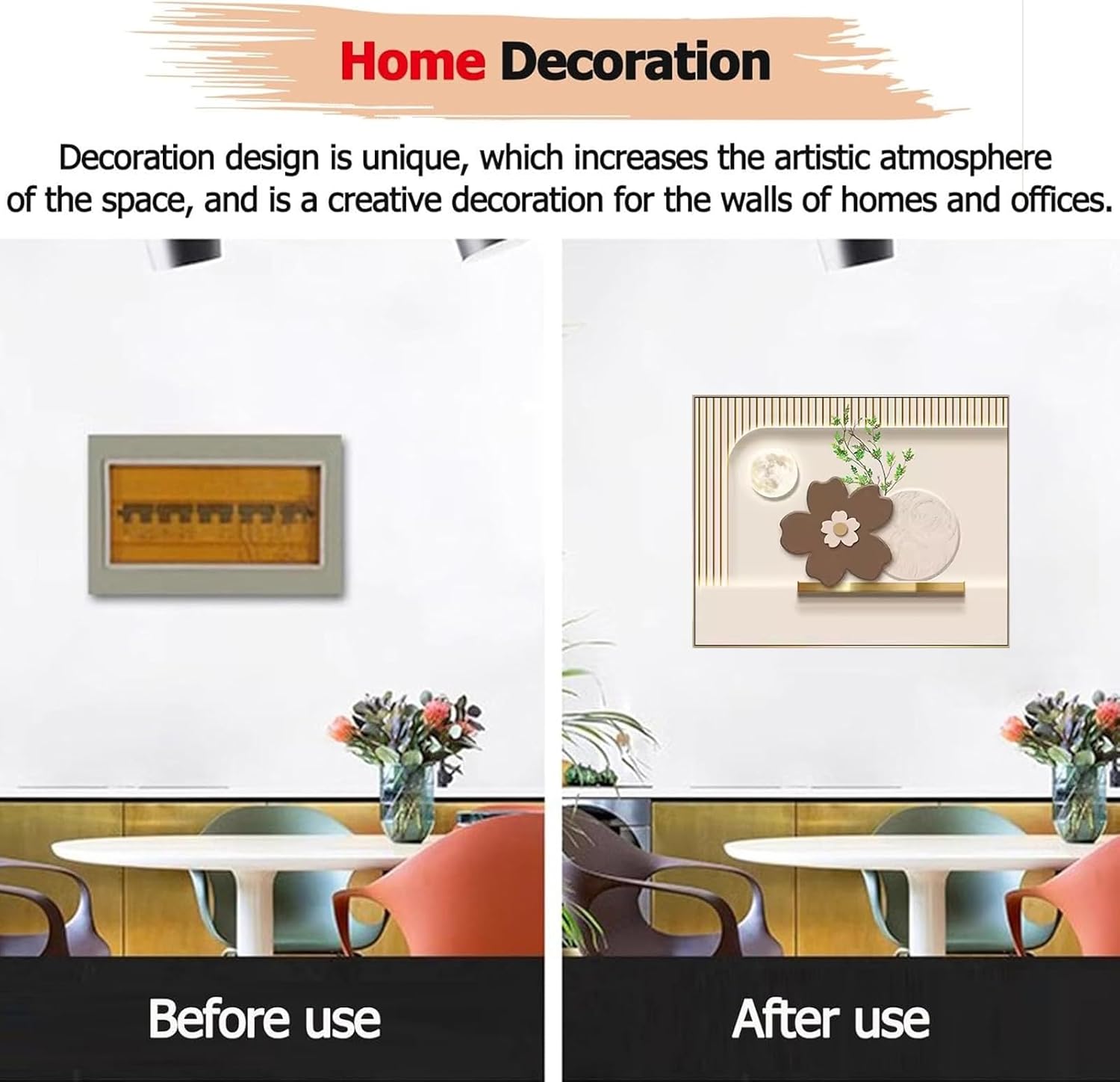 Transform your electrical panel from a practical item to a work of art with our Decorative Electrical Panel Cover. Crafted with attention to detail, this cover not only adds style to your home, but also offers a functional solution to elegantly conceal your electrical panel. With the sizes available, you can choose the one that best fits your needs. In addition to adding style and elegance to your home, the Decorative Electrical Panel Cover protects the electrical panel from dust and daily wear and tear. Not only is it an aesthetic addition to your home, but it's also a practical solution for keeping everything organized and out of sight. Don't miss the opportunity to transform your space with our Decorative Electrical Panel Cover. Choose the design you like best and enjoy the elegance and functionality it will add to your home. ● Specification: Material: PS+crystal canvas Size: - Decorative painting size: 45x35cm/17.7x13.8inch,50x40cm/19.7x15.7inch, 55x45cm/21.7x17.7inch,60x50cm/23.6x19.7inch,70x50cm/27.6x19.7inch - Suitable for meter box size: 35x25cm/13.7x9.8inch,40x30cm/15.7x11.8inch,45x35cm/17.7x13.8inch,50x40cm/19.7x15.7inch,60x40cm/23.6x15.7inch Applicable meter box thickness: 4.5cm/1.7inch Installation method: No drilling required Style: simple and modern Frame Color: golden ● Package contents: 1 x Meter box decorative mural(Including install accessories)