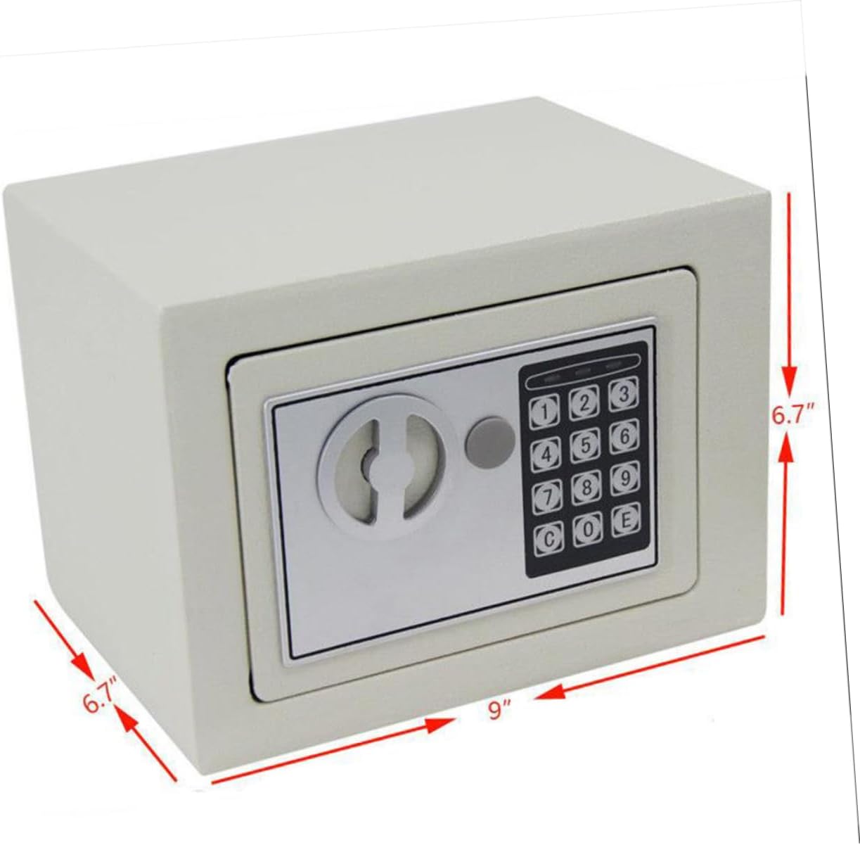Package Include 1 x safe box Characteristics - Size: 23 x 17 x 17 cm cabinet safe box. - Color: White small safe box. - Material: Steel small safety box. - Enter initial password 159, press E to confirm, then the green light is on. Turn right in 5 seconds, open the door mini safety box. - Programmable digital lock and emergency override cash drawer cabinet. - Solid steel construction deters security safe box. - Simple design and easy to use money box with lock. - Concealed hinges for resistance to prying home safe box.Goods Informationdigital security cabinet The home safe box features a solid steel construction with a programmable electronic lock warehouse prized possessions and high-value items.cash drawer cabinet It is constructed with solid steel to intrusion and is equipped with -locking bolts to keep the door securely latched