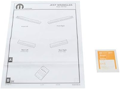 Door Sill Guards (Part Number: 82210104AB ) is a set of two black plastic door sill guards featuring the Jeep brand logo to protect door sills from scratches and scuffs. Category: GENERAL ACCESSORIES / DOOR EDGE GUARDS Also known as: Sill Kit Function: Protects interior door sills from wear and enhances appearance; available in various materials and finishes. Quality: OEM accessory manufactured for accurate fit and durable protection. Trust World Parts Direct , an American company offering best prices, a compatibility guarantee, expert support, and an OEM-backed warranty.