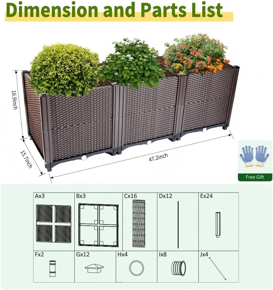 | Other Special Features of the Product | Drainage Hole, Heighted Raised Bed for deep-root planting, Modular Design to create custom planter, Weather Resistant |
