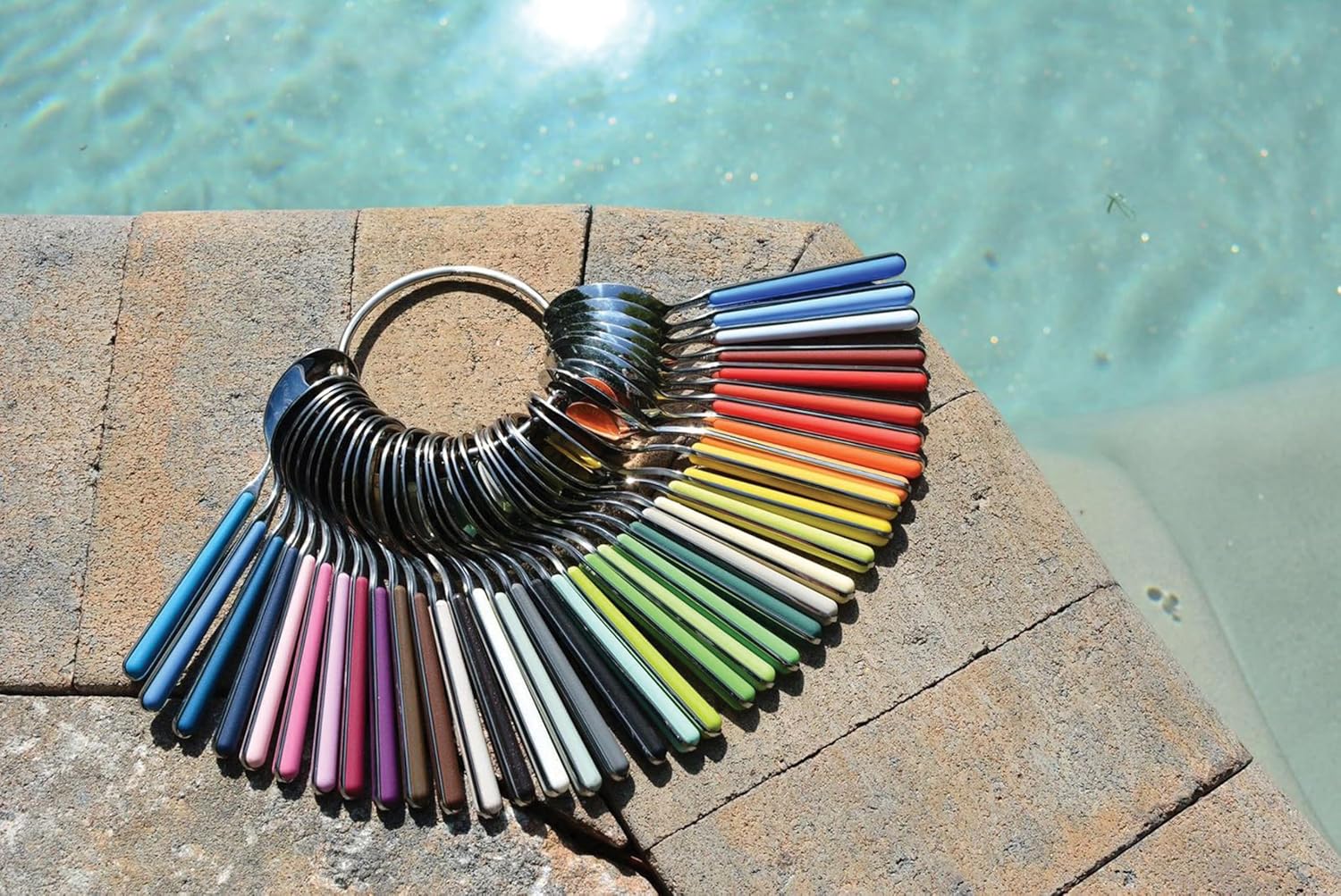 Made in Italy with the highest quality of 18/10 stainless steel and resin made with Nylon and Fiberglass. Colorfull, elegant and timeless shape. The Stainless Steel body goes all the way to the end of the handle. The 2 shelves that make the handle are not glued together but they are welded to become a whole piece. Knives have double serration for a durable sharpness. Dishwasher safe, durable and food safe. Life time on the handle.