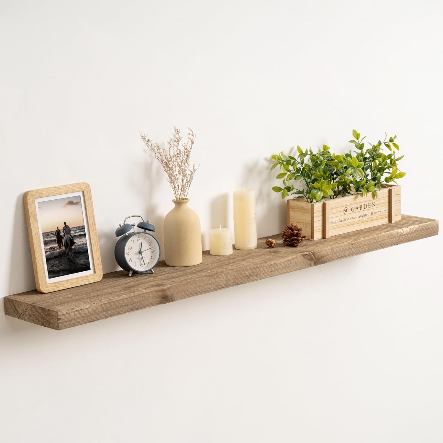 | Included Components | 2 Reclaimed Wood Floating Shelves, 2 Smart One-Piece Matel Brackets, Level & Instruction, Short Screws, Wall Screws & Drywall Anchors |