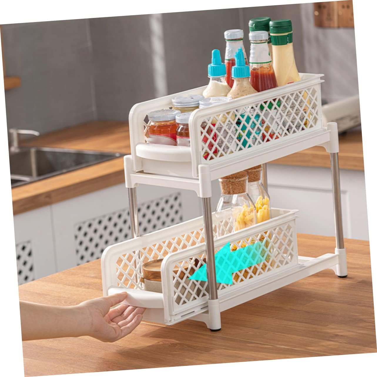 Package Include 1 x Storage Rack Features -Color: White vanity shelf -Material: PP and stainless steel professional bathroom shelf -Size: 37.50X37.00X18.50cm/ 14.74X14.54X7.27inch bathroom countertop shelf -Shelf can be securely installed without screws and can be easily removed and cleaned multi-function bathroom shelf. -The double-layer provides large capacity for storage, helping to store items in every room bathroom storage shelf. -The storage shelf is space-saving and make life more orderly, bringing much convenience bathroom storage shelves. -The bottom is stable, and you can place it anywhere as you want firmly, it will not skid off rack for bathroom. -The visible box body makes it easy to find the items you need, clear restroom organizer.Goods Informationrack for bathroom As a kind of household multi-purpose tool storage, it has powerful storage capability.vanity shelf This double-layer storage rack is designed for home use to store your different items.dressing table storage rack A nice kitchen storage organizer for you.bathroom is made of which is and to use