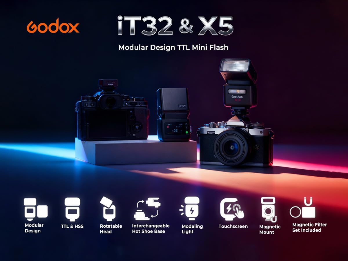 Godox IT32 TTL Camera Flash with X5 C Flash Trigger for Canon Cameras,Magnetic Hotshoe&Trigger 2-in-1,Colorful Touch Screen,Rotatable Flash Head,X System TTL&HSS,๐๐ง๐๐จ๐ฆ๐ฉ๐๐ญ๐ข๐๐ฅ๐ ๐ฐ๐ข๐ญ๐ก ๐๐๐ง๐จ๐ง ๐๐๐/๐๐๐๐