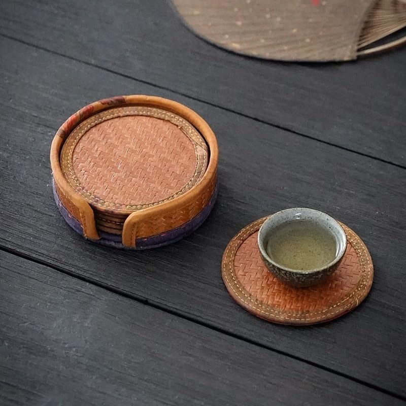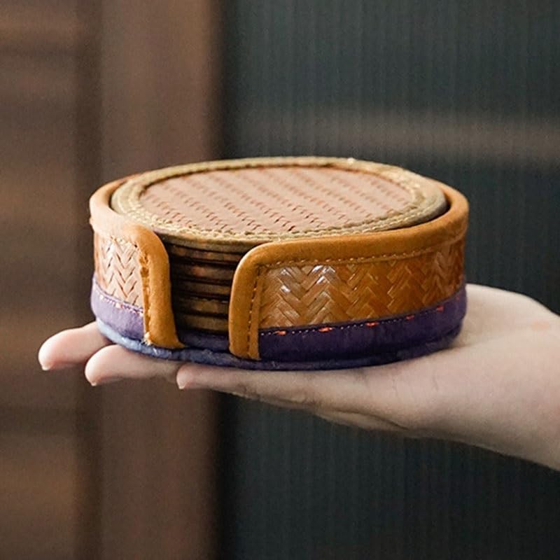 Handmade Coasters Fabric Coasters Insulated Drinks Coffee Tea Placemats Desk Table Home DecorProtect the desktop from burns.Hand woven texture clear.Heat resistant, waterproof, non-slip.Easy to clean - just wipe with a soft, damp cloth.Suitable for all occasions. For example, the kitchen; A meeting; Feast.Workmanship: Handmade WeavingUse: Restaurant, Hotel, Home. etc...A: Coaster size :10x0.4 cm Storage basket :11x4 cmB: Coaster size :8x0.4 cm Storage basket :9x4 cmPacking list: Coasters *6 pieces (excluding other exhibits)Notes:Due to manual measurement, please allow an error of 2-3 cm.The actual color may be slightly different from the picture due to different lighting.Versatile & Ideal for Choiceing : Whether it's for your kitchen, hotel, bar, café, restaurant, or office, these cute coasters are a perfect fit. They also serve as ideal choice and decorations for festivals, birthdays, weddings, spring gatherings, and more. Show your loved ones how much you care with this thoughtful and practical choice.