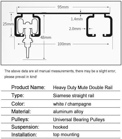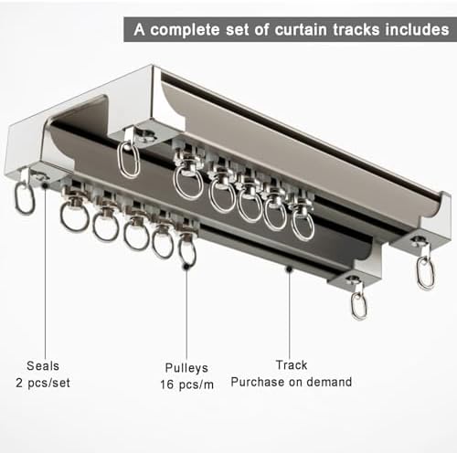 Transform your living space with our Heavy Duty Aluminum Curtain Track, expertly crafted from durable aluminum alloy. This double track straight track is designed to support heavy curtains, making it perfect for both residential and commercial use. Available in elegant colors like white and champagne, it seamlessly blends with any decor style. Our curtain track features a robust 2.0mm thickened aluminum construction, ensuring long-lasting performance. The multi-layer surface treatment enhances wear resistance and colorfastness, protecting it from daily wear and tear. With a bottom thickness of 2.6mm, this track promises exceptional strength and stability. Installation is a breeze with our ceiling-mounted design. Forget complex instructions—simply drill and fix for a straightforward setup. This convenience allows you to focus on transforming your space without the hassle. Equipped with universal bearing alloy pulleys, our curtain track guarantees smooth and silent operation. This means you can effortlessly open and close your curtains, enhancing the overall ambiance of your home. Each package includes everything you need: curtain track as per your requirements, 16 pulleys for smooth operation, 2 end caps for a polished look, and connectors for extending the track as needed. With multiple sizes available, our Heavy Duty Aluminum Curtain Track is ideal for various spaces, providing a stylish and functional solution to your curtain hanging needs. Please note that due to manual measurement, there may be a slight size variation of 1-3 cm. Upgrade your home decor today with a curtain track that combines strength, style, and ease of use!