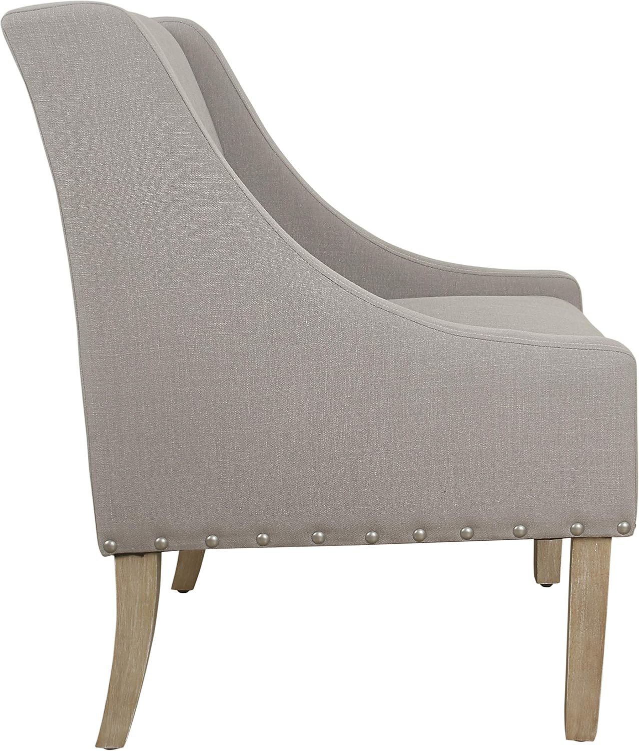 Our Swoop Accent Chair features a modern swoop arm design in a dark charcoal gray fabric with nailhead trim. Our menswear-inspired swoop chair has a timeless appeal that complements a broad range of home décor. The textured linen weave has a relaxed organic feel, enhanced by wood legs in a dark walnut finish. For a modern masculine look, add this accent chair to your living room, bedroom or entryway, or pair two together for a stronger statement. Easy to assemble and maintain.