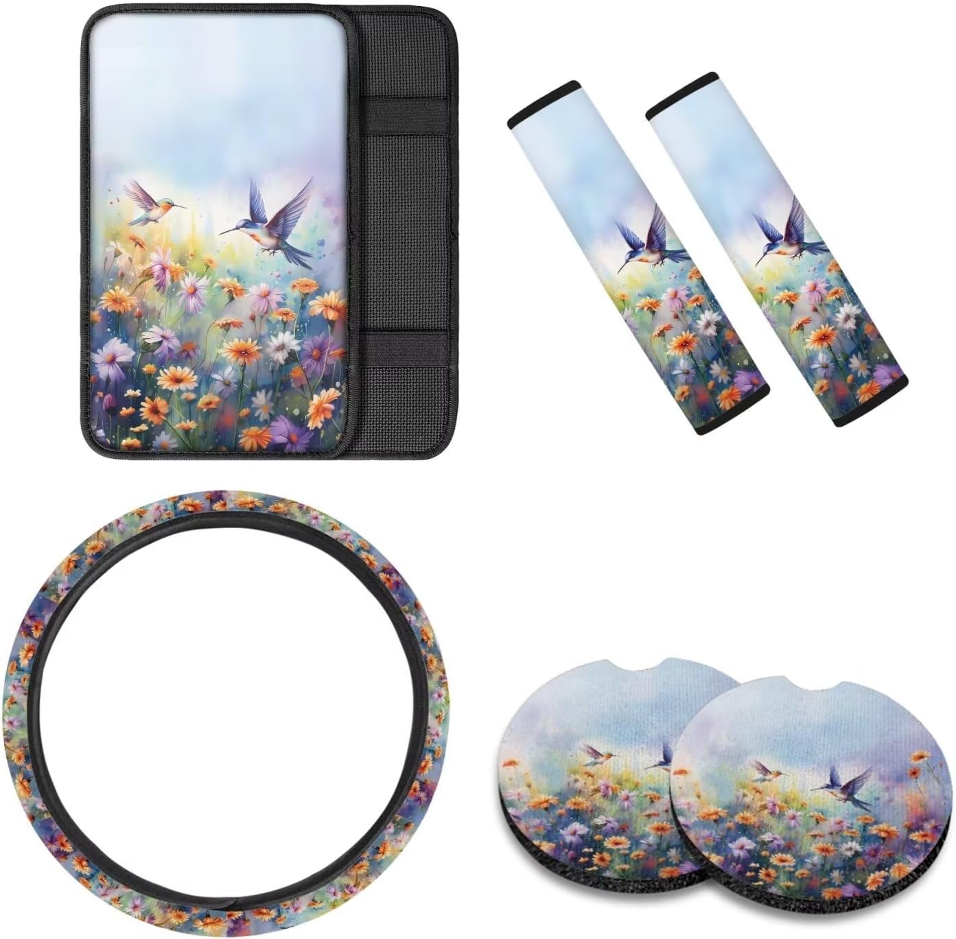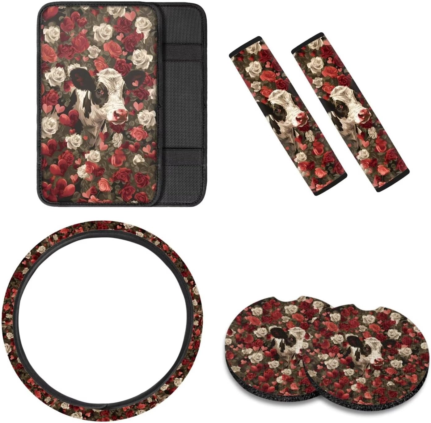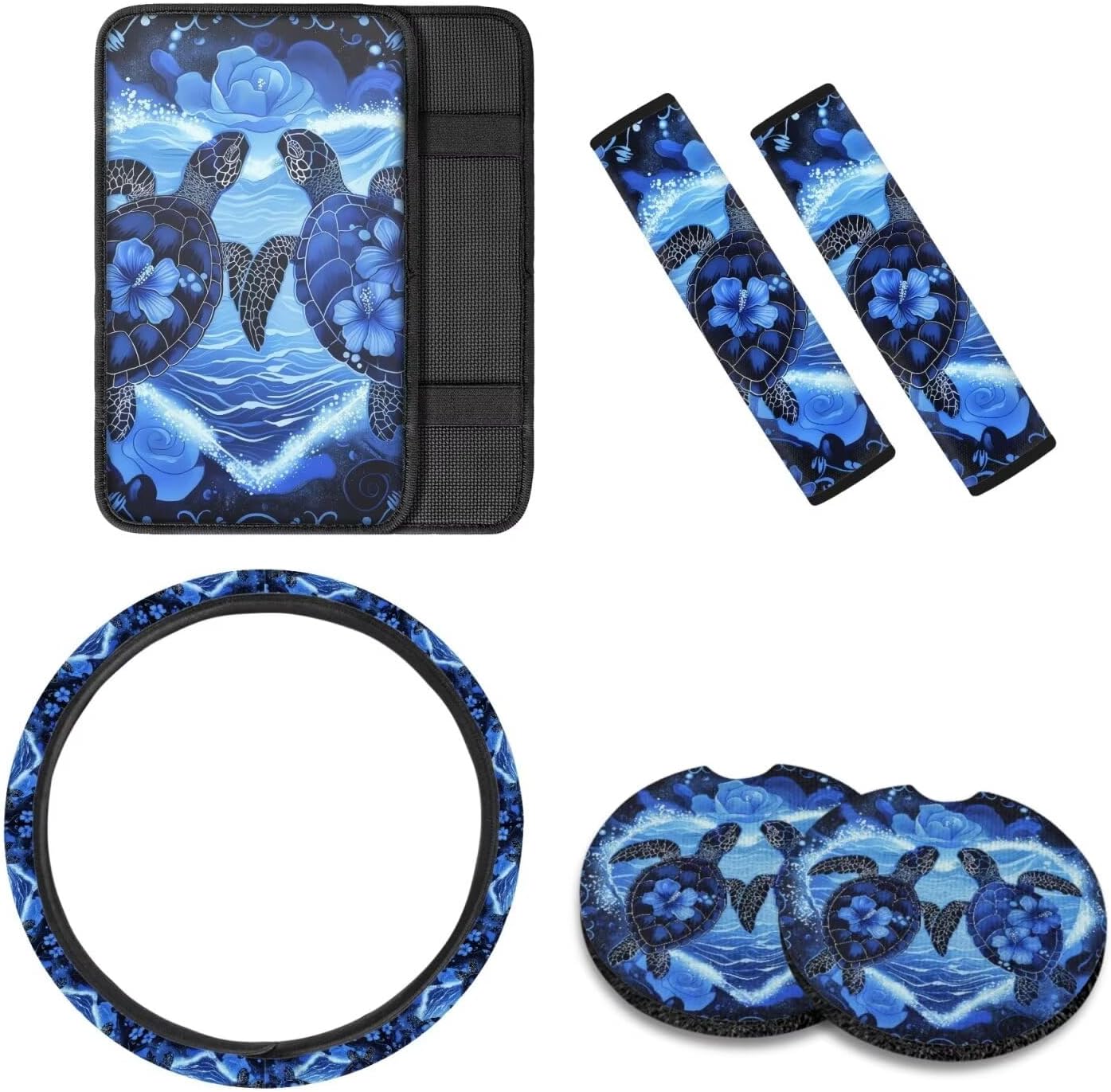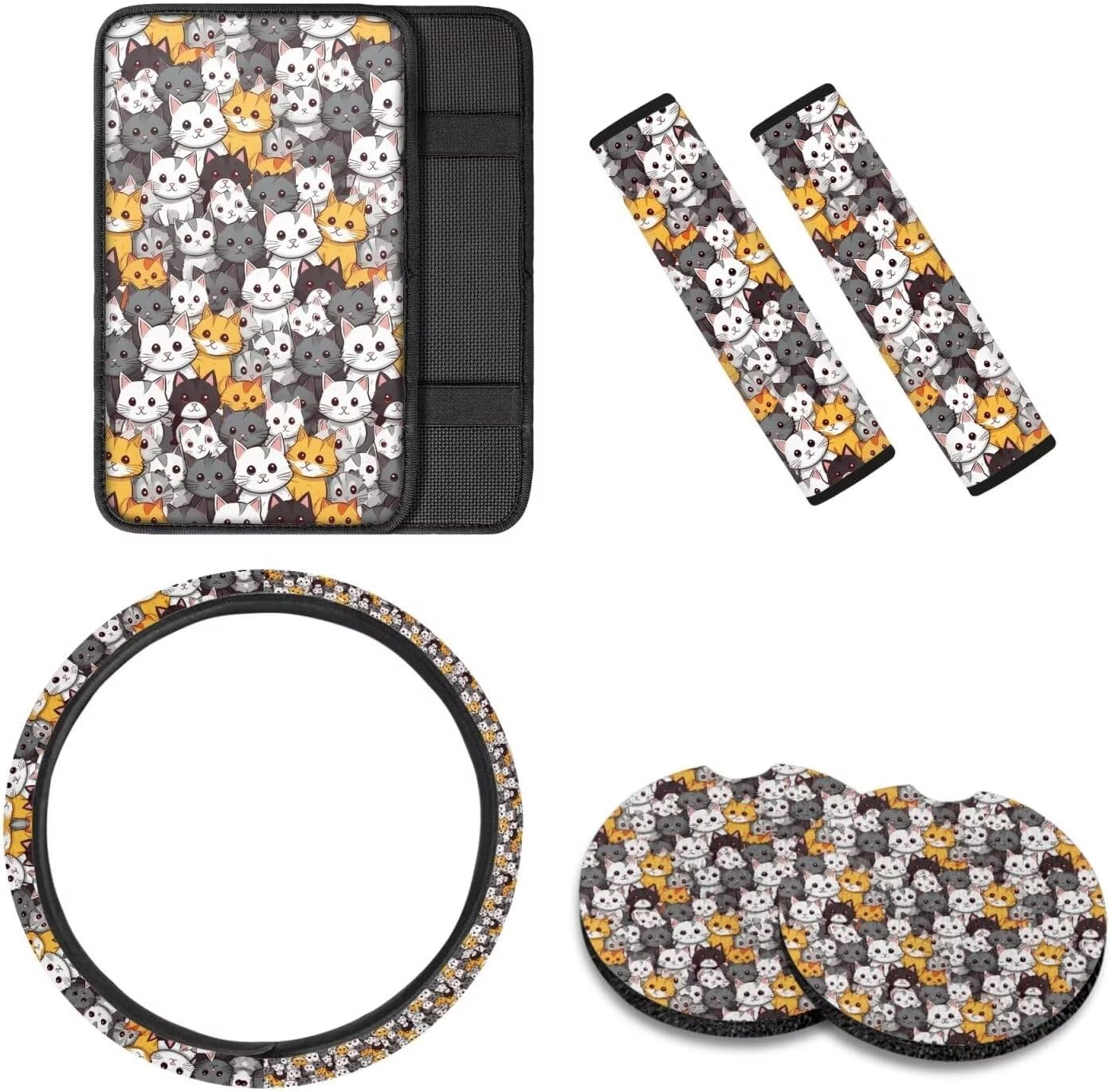 Upgrade your driving experience with our all-inclusive 6-piece car accessory set, designed specifically to enhance the look and feel of your vehicle's interior. Start with our premium steering wheel cover, crafted from high-quality polyester that not only feels comfortable to the touch but also protects your steering wheel from daily wear and tear, including scratches and cracks. Its universal design fits most vehicles with a diameter of approximately 15 inches, making it a perfect addition for any season or weather. Next, our seat belt shoulder pads offer a comfortable solution to the discomfort that can sometimes come with wearing a seat belt for extended periods. Measuring approximately 3 x 11.7 inches, these soft, elastic pads slide easily over your seat belts, providing a snug fit without restricting your movement or causing discomfort. Our car coasters are a must-have for anyone who enjoys a refreshing beverage while on the go. Made of top-notch rubber, they are fully waterproof, insulated, and incredibly easy to clean. Whether you're using them in your car, at home, or in the office, these coasters will keep your surfaces protected from spills and stains. Lastly, our center console armrest cover provides both protection and comfort. It safeguards your center console from spills, scratches, dirt, and sticky substances, while the non-slip backing ensures it stays securely in place during your drives.