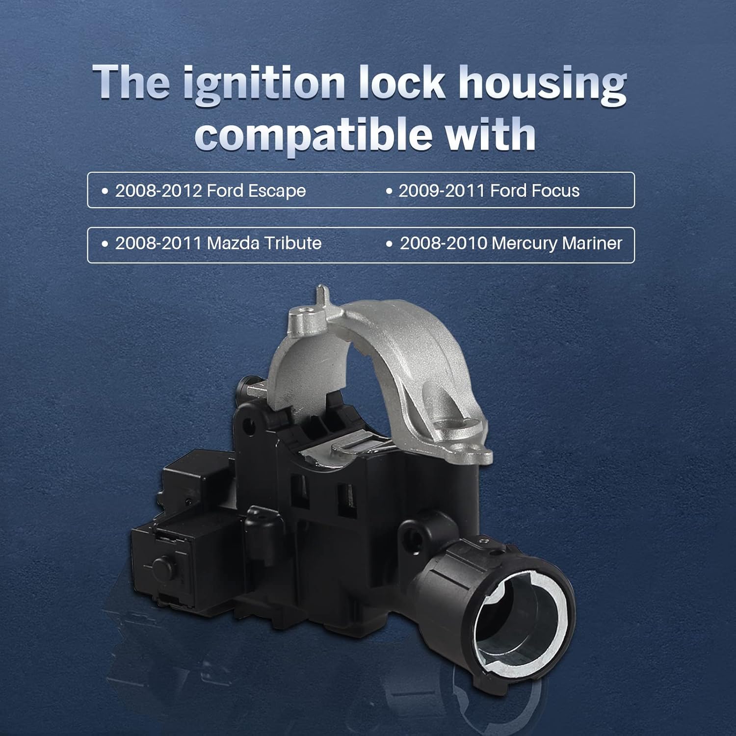 Product Name:Ignition Lock HousingMaterial Type:Made of high aluminum and plastic quality material Fitment: Compatible with 2008-2011 Mazda Tribute Compatible with 2008-2012 Ford Escape Compatible with 2008-2010 Mercury Mariner Compatible with 2009-2011 Ford Focus Features: 1.This lock case is made of high-quality aluminum and high-quality plastic structure, and is lubricated with silicone grease. 2.This Ignition lock housing features a thicker, more rigid internal cam to address the original equipment flaw. 3.Our Ignition lock housing made of high aluminum and plastic quality material.This ignition lock housing has been tested on vehicles and materials. 4.The Ignition lock housing is manufactured by an ISO-certified manufacturer, and meets or exceeds OEM requirements. Packing Include: 1 x Ignition Lock Housing