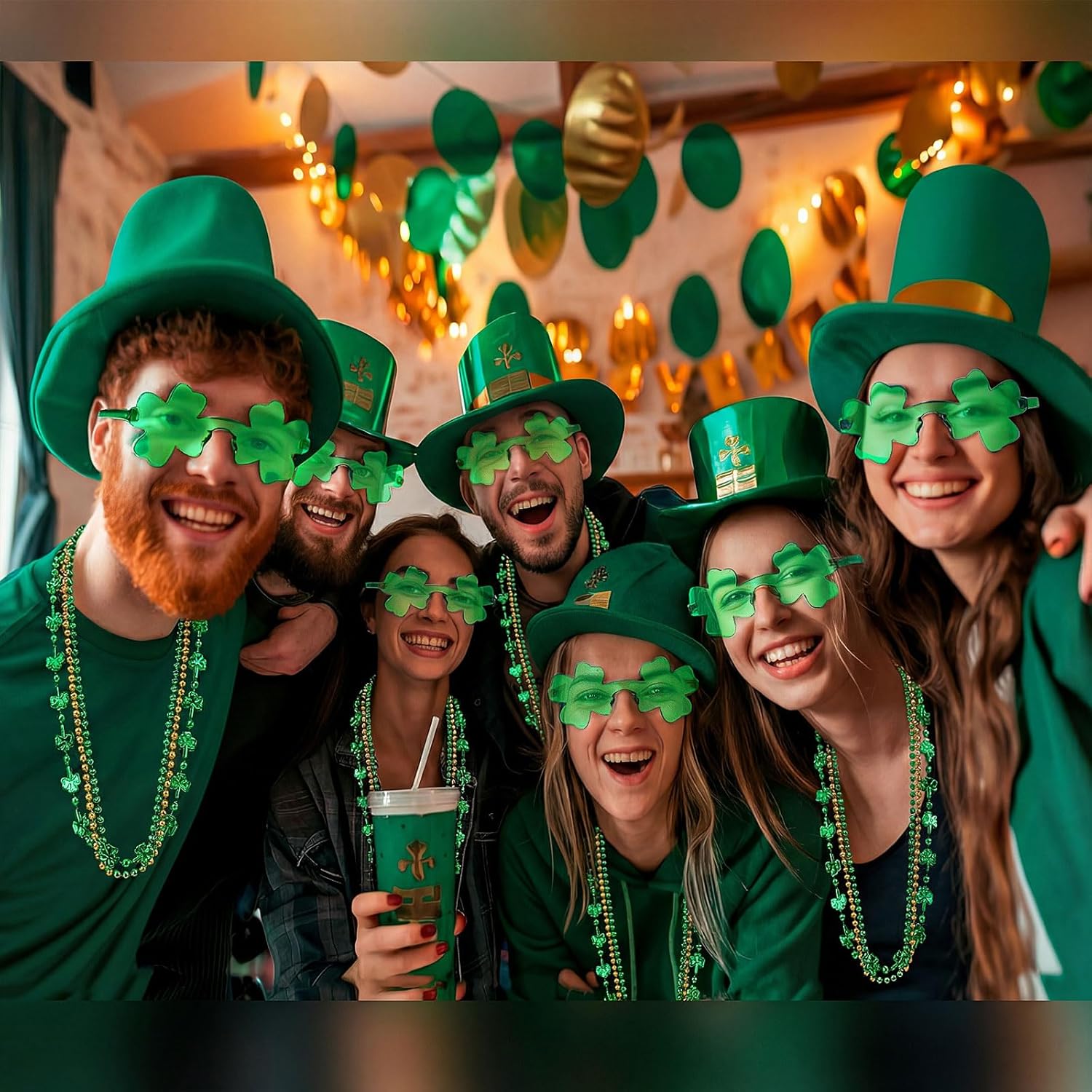 Features: Cute and Lightweight: These lovely green glasses with a nice appeal, high quality, durable and lightweight, not easy to break and can be applied for a long time. The Iconic St. Patrick sunglasses create a happy atmosphere, are comfortable and stay on your face well without sliding down your nose easily, no burden to your face, can be worn by adults, making you look more fun and festive. Bead Supplies: Experience the epitome of elegance with our captivating range of bead designs, carefully selected to infuse a sense of festivity into St Patricks Day. Specifications: Material: plastic Color: green and gold Size: Package includes: 100 X green shamrock glasses 100 X necklaces Notes: Manual measurement, please allow slight errors on size. The color may exist a slight difference due to different screen displays