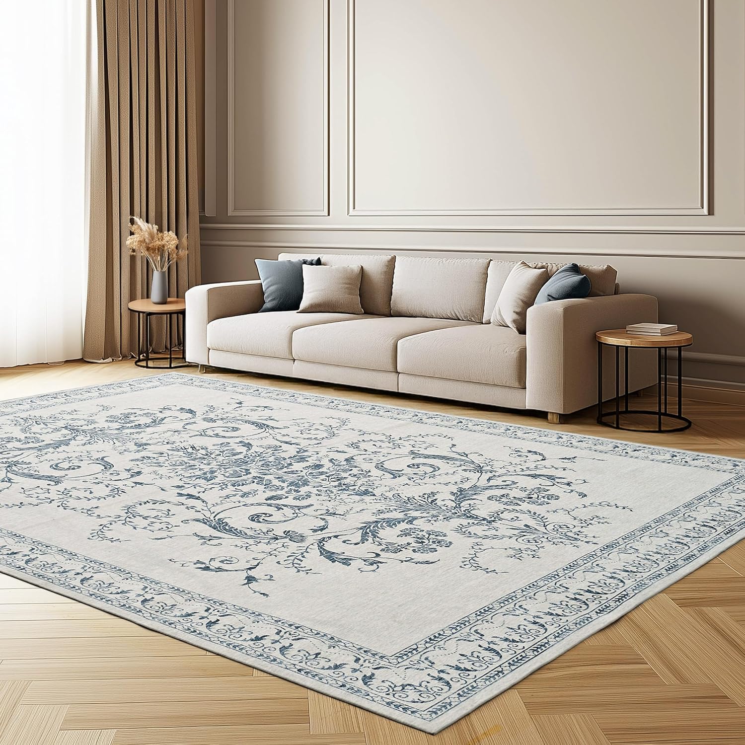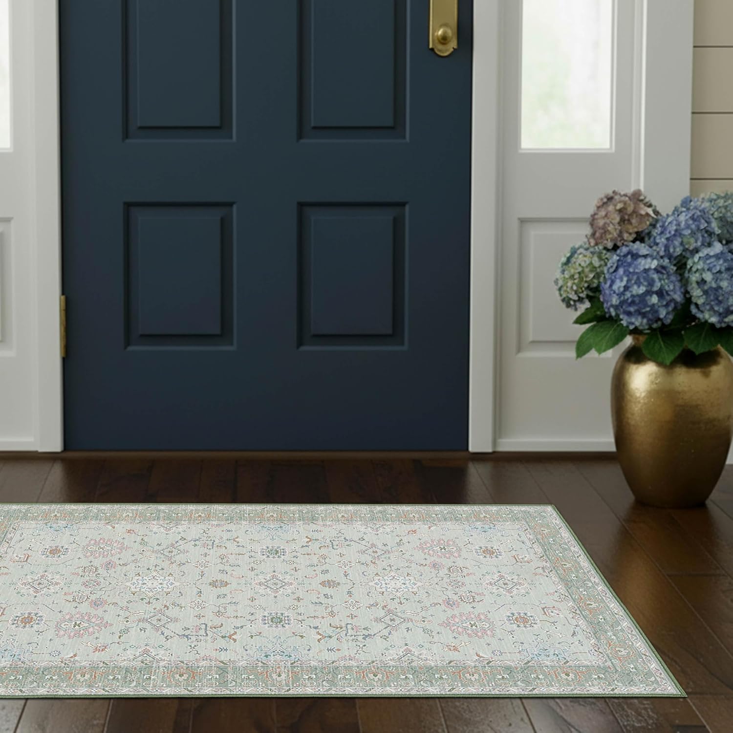 Introducing Laura Ashley's Washable Non-Slip Rugs – the perfect blend of functionality and timeless elegance. Crafted with Laura Ashley's signature commitment to quality, these rugs are designed to elevate your space with their romantic aesthetic and countryside inspirations. Say goodbye to slippery floors and hello to peace of mind with our non-slip backing, ensuring stability and safety in high-traffic areas. Whether you're seeking a pet-friendly solution or a stylish accent for your bathroom or kitchen, our machine washable rugs are fade and stain-resistant, making them ideal for busy households. With detailed vivid prints and floral patterns, these rugs add a pop of color and charm to any room. Experience the Laura Ashley difference in home decor today.
