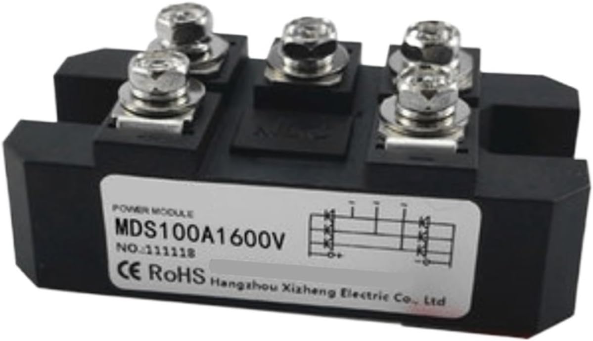 Diodes RectifiersMDS100A1600V Three phase rectifier bridge 12V 24V 36V 48V 220V 480V 600V AC-DC high-power module 100Amp 1600Vreminder1. About product selectionThe marked current of the power module is the average value of the on state, not the actual effective value of long-term operation. When selecting, sufficient margin should be left based on the actual working environment and conditions.(1) Pure resistive load 2-2.5 times margin: actual current (A) × 2 (2.5)=Module nominal current (A) (2) Inductive load 6-7 Signal margin: Actual current (A) × 6 (7)=Module nominal current (A)2. Radiator configurationWhen the actual working current of the device is greater than 5A, please be sure to configure a suitable heat sink for use