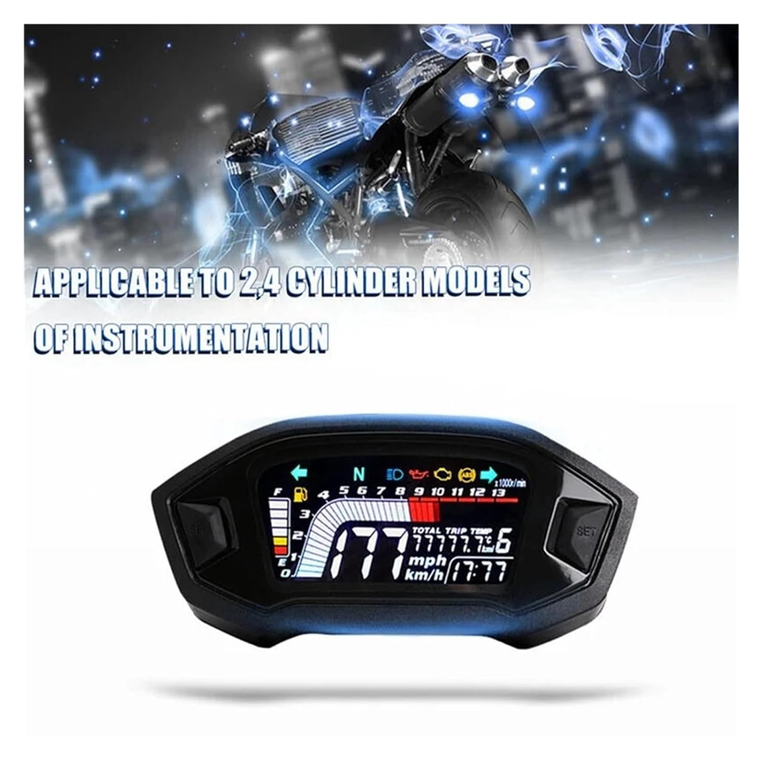 Dear friend, thank you for visiting my store. If you have any questions during the purchase process, Contact us,Thank you! Happy shopping! Digital Tachometer Odometer Speedometer Universal For 2, 4 Cylinder Motorcycle AccessoriesSafe: The motorcycle odometer's digital readout capacity , practical, and can be combined and replaced with other equipment.applicable to most motorcycle models.For 2, 4 cylinder motorcycleTime:24 hoursOil level: 6-segment displayPower supply voltage: DC8-12VSpeed display: km/h, mphGear position: 1/2/3/4/5/6 NSpeed display range: 0-199km/h (miles)Internal display: Less than0.5 secondsOdometer display: 0 ~ 999999 kilometers (miles)Odometer display unit: 0.1kmOdometer display distance: 999.9km (miles)Odometer display unit: 0.1kmRpm range: 0 ~ 13000 r/minMaterial:ABScolour:black【Service Guarantee】If you have any installation and product problems after receiving the goods, you can contact us, we will handle the problem properly.