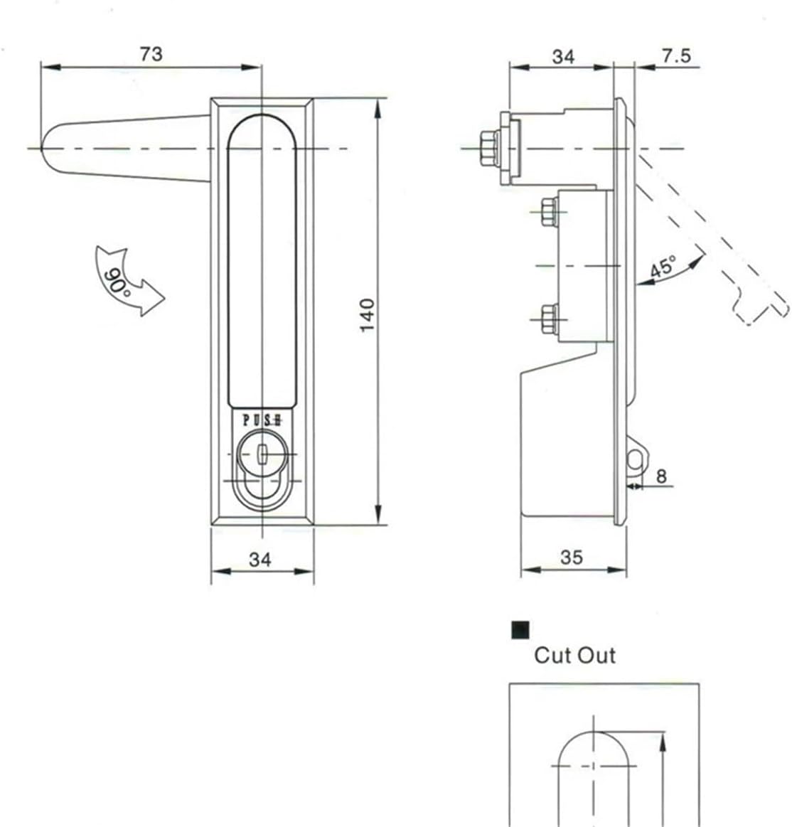 LatchesMS490-1 Switch Control Cabinet Distribution Box Flat Lock 1PcsHandle Direction : Right PushModel Number : MS490-1Lock Type : Keyed Padlock