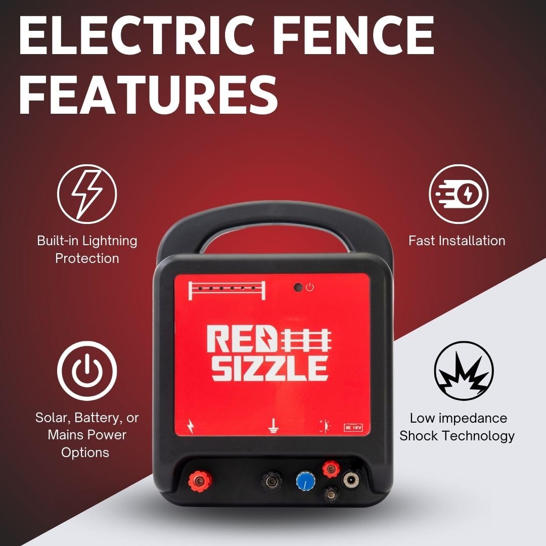 Our multi-use energizer can be used in plug in, battery, or solar power applications. Ideal for larger pastures. Powers up to 62 miles of fence. This charger controls: Cattle, Horse, Pig, Bull, Sheep, Goat, Deer, Wolf, Rabbits, Raccoon, Bear, Dog, Poultry 6.5J stored joules energy 3J maximum output 6 LED indicator lights to provide voltage performance at a glance. Made of a durable construction. It will not rust, corrode, is shock resistant, and made with built in lightening protection. Safe using low impedance shock technology. Fast Installation with convenient rear mounting hole. Built in high voltage circuit protection or voltage surges. Designed to run on 110V Power source, external 12V battery (sold separately), or solar panel (sold separately).