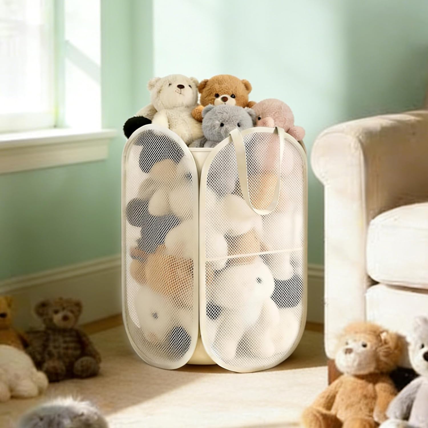This multi-purpose mesh storage bin is your go-to solution for keeping your space tidy and stylish. Whether you’re organizing stuffed animals in a child’s room, wrangling blankets in the living room, or sorting laundry in the bedroom, this collapsible basket adapts to any need. Designed for effortless assembly, it sets up in seconds—no tools required. The breathable mesh fabric promotes air circulation, making it perfect for fabrics and plush items. When not in use, it folds flat for easy storage. With its neutral finish and clean design, it complements any décor while helping you stay organized. Ideal for bedrooms, living rooms, dorms, closets, and more.