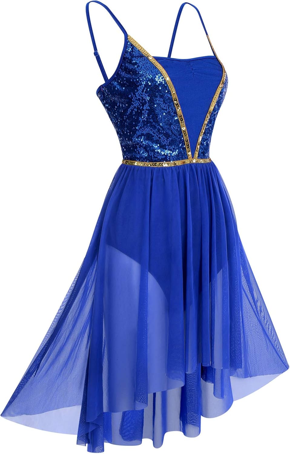 Elegant Women Lyrical Modern Contemporary Dance Dress Shiny Sequins Spaghetti Strap Mesh Tulle High Low DressesOverview❤ Material: Polyester + Sequin❤ Condition: New with Tag❤ Sleeve Style: Sleeveless❤ Season Suitable: Spring, Summer, Autumn, Winter❤ Gender: Women❤ Package Included: 1PC DressSize Chart❤ Tag No.XS: Bust: 29.0" / 74cm; Waist: 26.0" / 66cm; Dress Length: 30.0" / 77cm; ❤ Tag No.S: Bust: 30.5" / 78cm; Waist: 27.5" / 70cm; Dress Length: 30.5" / 78cm; ❤ Tag No.M: Bust: 32.0" / 82cm; Waist: 29.0" / 74cm; Dress Length: 31.0" / 79cm;❤ Tag No.L: Bust: 33.5" / 86cm; Waist: 30.5" / 78cm; Dress Length: 31.5" / 80cm;❤ Tag No.XL: Bust: 35.5" / 91cm; Waist: 33.0" / 84cm; Dress Length: 31.5" / 81cm;