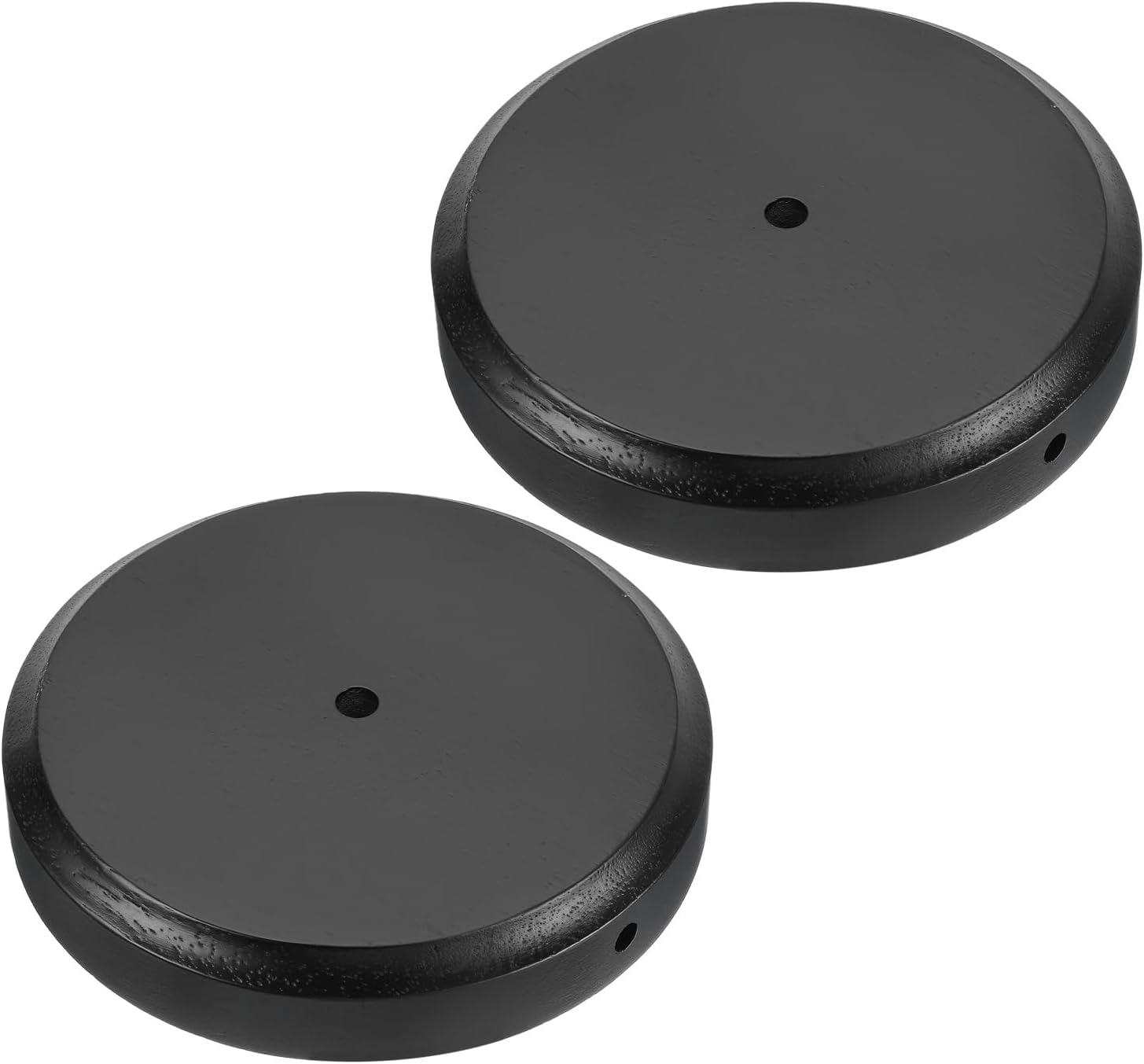 This Wooden Lamp Base is a round, solid wood base features a center hole and side holes. These are widely used on the bottom of a desk lamp, table lamp. Also, you can use it on a vase base, art decoration, DIY projects.Specification:Color: BlackMaterial: WoodTop Diameter: 22.9cm / 9 InchBottom Diameter: 24.8cm / 9.75 InchHeight: 1.18inch / 1.2"Center Hole Dia.: 10mm / 0.39"Sided Hole Dia.: 8mm / 0.32"Package Content: 2 x Round BaseAdvantagesMade of wood material, with good appearance and not easy to scratch your glass table or metal table.The installation of table lamp is more convenient with holes on the bases. Lamp poles or Lamp wires can pass through these hole easier and make your table look tidy.InstructionEasy to use, put the table lamp pole into the middle hole of the round base.Simply light base replacement.NOTE: Please check the mounting hole size before buying.