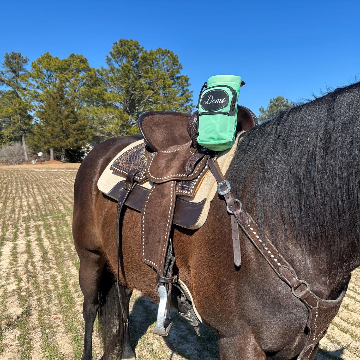 ✔️ Laser-engraved personalization ✔️ Perfect horse gift ✔️ Insulated for temperature control ✔️ Secure attachment to saddles ✔️ Holds up to 40oz bottle ✔️ Multi-pocket design ✔️ Doubles as phone holder ✔️ Easy access while riding ✔️ Durable 1680-denier nylon ✔️ Tested by equestrians