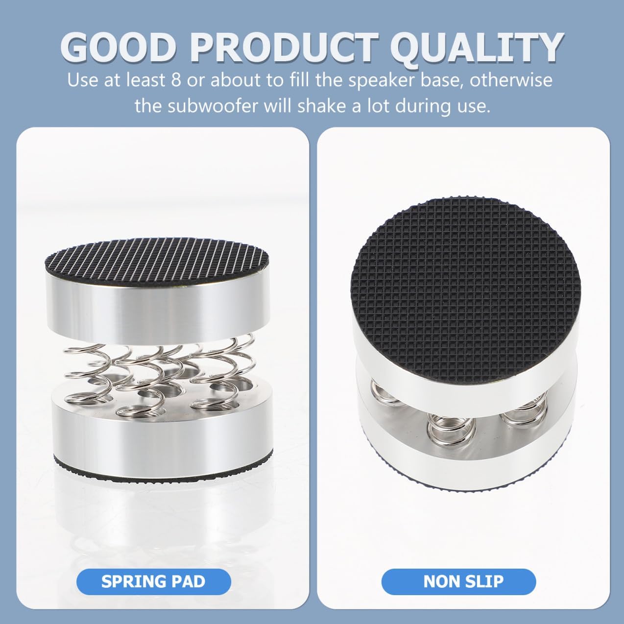 Package Include 4 x spring pads Features -Material: Aluminium alloy, rubber Audio Spring Pad -The installation is very simple, no need to make destructive holes in the equipment and then fix it with screws, no need to use double-sided adhesive Shockproof karaoke Speaker Holder -1 At 4 spring foot pads are required when the weight of the equipment is less than 30KG. If the weight is too heavy, the number of foot pads should be increased Shockproof Speaker Case. -CNC lathe machine, each spring pad can bear a maximum load of 9KG, can use it with confidence Multipurpose Speaker Bracket. -Anti-slip self-adhesive rubber pad, with anti-slip effect and shock-proof effect, which will bring you a better experience Speaker Stand. -If it is a subwoofer, the weight of the subwoofer must be at 8 or approximately fill the speaker base, otherwise the subwoofer will shake during use Shockproof Speaker Bracket. -It is not afraid of water, will not fade, and has a decorative effect Practical karaoke Holder.Goods InformationCreative Speaker Spring Tool workmanship ensures practicality.Floor-standing Speaker Spring Pad This speaker spring pad is made of materials and can withstand long-term use.Speaker Accessory The structure is simple, and the use feeling is comfortable
