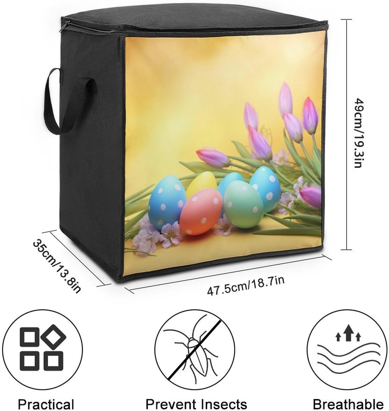 The April Easter printed Large quilt storage bag fit easily into closets or shelves, and are powerful enough to hold your daily items, protecting your stored items from moisture, dust and damage, keeping them fresh and clean Bedroom storage bags can also be used to store seasonal and Christmas decorations, making them a suitable Christmas gift for family and friends