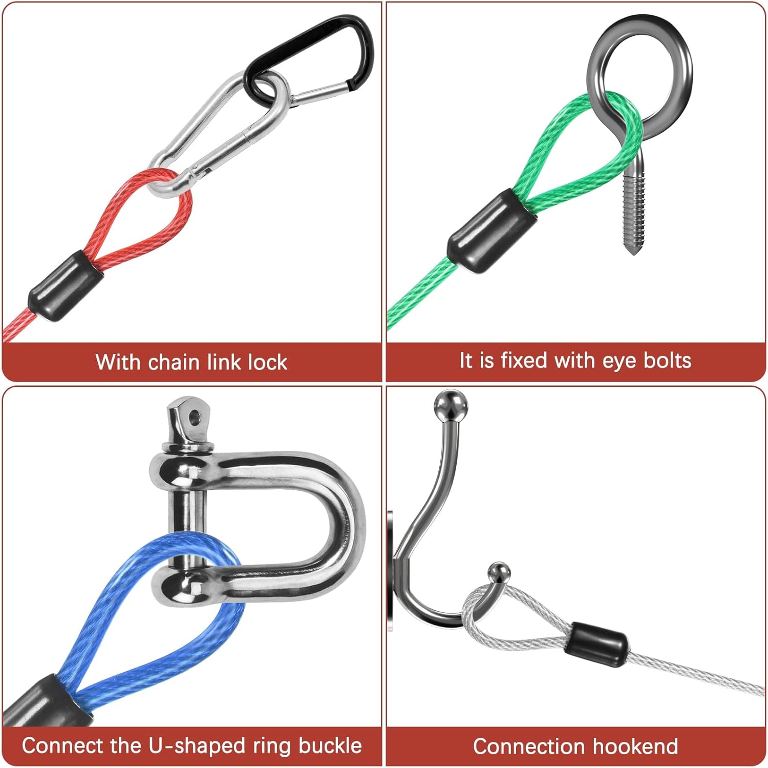 PRODUCT INTRODUCTION:1. Features & Applications:Good DurabilityThe safety cable is made of good quality steel wire rope and transparent vinyl coating, effectively preventing rust and scratches. Braided steel offers strong corrosion resistance, is both firm and flexible, and can be used for extended periods.Extensive PracticalityThe luggage lock safety cable is used for hanging and fixing, and can be used to connect belts or clips. This steel cable is suitable for locking luggage, bicycles, motorcycles, toolboxes, tents, sheds, ladders, and anything else you want to keep safe. Additionally, it is suitable for home decoration, such as hanging plants or ornaments.2. Specification:√ Type: Security Cable with Loops√ Material: Stainless Steel√ Color: Blue√ Length: 50 cm / 19.7 inch / 1.64 ft√ Wire Diameter: 3 mm / 0.11 inch√ Package Includes: 2Pcs x Luggage Lock Safety Cable3. Use and Warm Tips:TIPS: The safety thread can be used to fix the hanging lamp with any type of clip and can even be used as a clothesline during outdoor travel. (Do not use it to lift or pull heavy loads, only for safety cables and hanging lightweight.)
