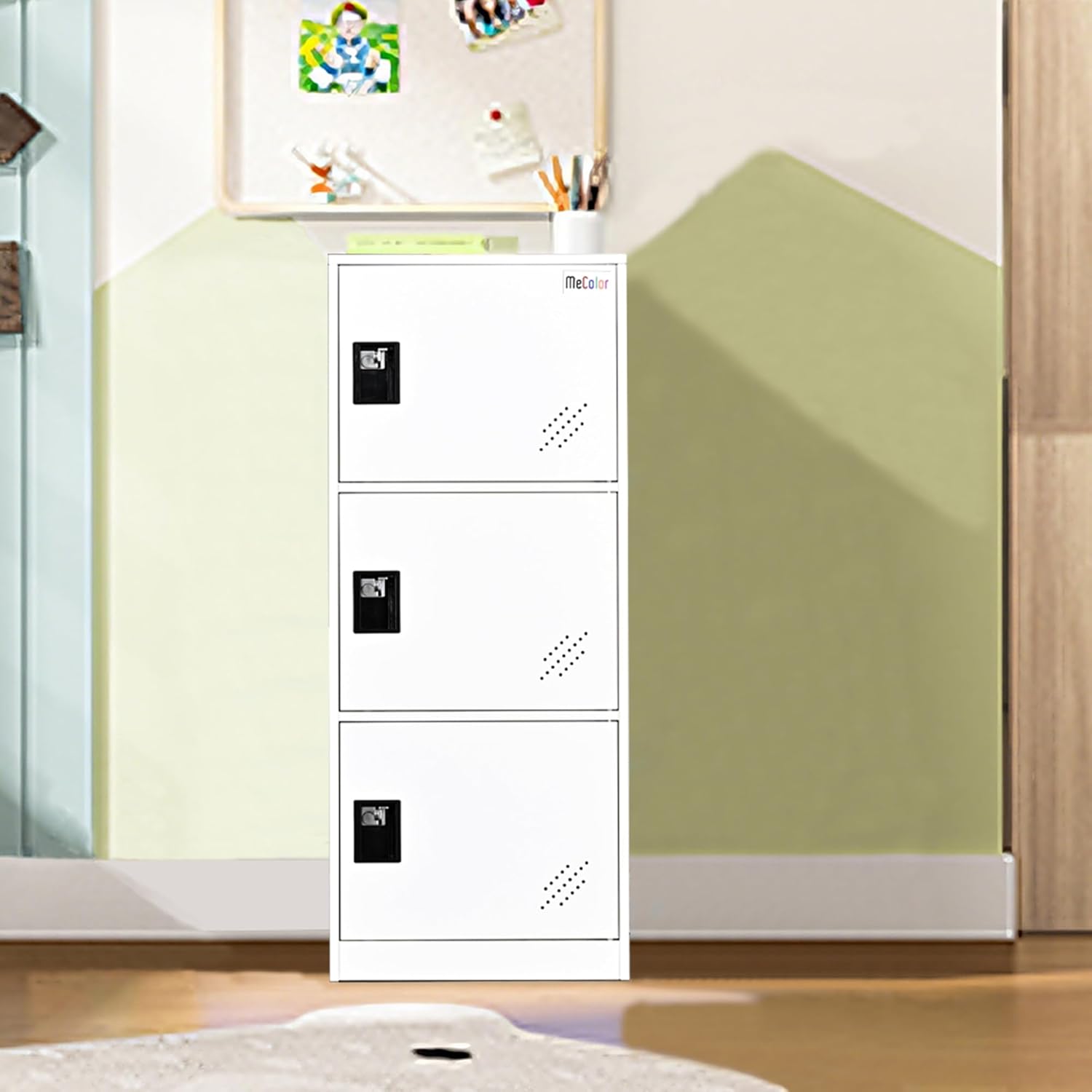 This storage locker has 3 doors, each door is equiped with lock latch can be locked with your padlocks to stop fron unauthorized access. Overall size 36.4"H x 14.9"W x 17.7"D (H92.5 x W38 x D45 cm), single component size 10"H x 13"W x 16.3"D (H25.4 x W33 x D41.5 cm), it can hold up tools in gym, can store files and folders in office, etc. With knock down structure, this metal cabinet is easy to put together with detailed instructions and online assembly videos. It will take about 15-20 minutes to finish the installation. This employee locker is made of cold rolled steel, it is strong and durable, not easy damaged. We offer replacement locks on our spare parts
