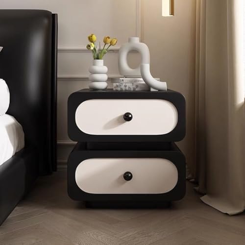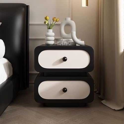 Elevate your living space with our Small Bedside Table with Storage, a perfect blend of modern minimalism and luxurious design. Crafted from high-quality solid wood and accented with premium leather, this nightstand enhances any contemporary bedroom with its sophisticated look. Designed with functionality in mind, it features two sturdy wooden drawers that provide ample storage for your personal belongings, keeping them organized and easily accessible. The spacious top surface is ideal for displaying your watch, smartphone, and everyday essentials, making it a perfect addition to your nighttime routine. This versatile piece is not just a bedside companion; it shines as a narrow end table in your living room, a stylish accent in your home office, or even as a chic kitchen side table. Its compact dimensions make it suitable for small spaces, while its elegant design adds a touch of refinement to any room. Whether you use it as a side table beside your sofa or as a decorative element in your entrance hall, this bedside table brings captivating dynamism to your home decor. Available in a variety of colors, including white, black, pink, brown, and gray, this rectangle nightstand seamlessly fits into your personal style. With no assembly required, you can effortlessly integrate it into your space and enjoy the benefits of its design and functionality right away. Experience the perfect combination of style and practicality with our Small Bedside Table, designed to enhance your home while providing the storage solutions you need.