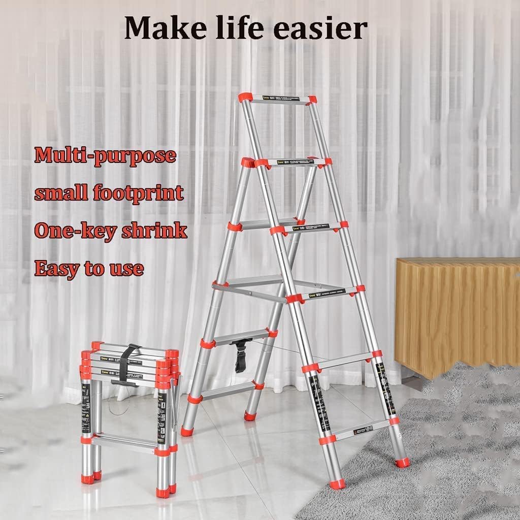 Multifunctional Use:This is a multifunctional home ladder, suitable for organizing closets, replacing ceiling fans, light bulbs to clean up,climbing high places to useLadder Type:Telescoping Ladders/Folding Ladder/Step Ladders Material: AluminumColor: Red, BlackSize:4 Step Ladder,5 Step Ladder 4 Step Ladder: Weight: 5.8kg5 Step Ladder: Weight: 7.3kgLoad capacity: 330 LB/150KGObtain: Ladders × 1 (excluding any products)The step ladder provides ample height for your household tasks while anti-slip feet help you maintain balance