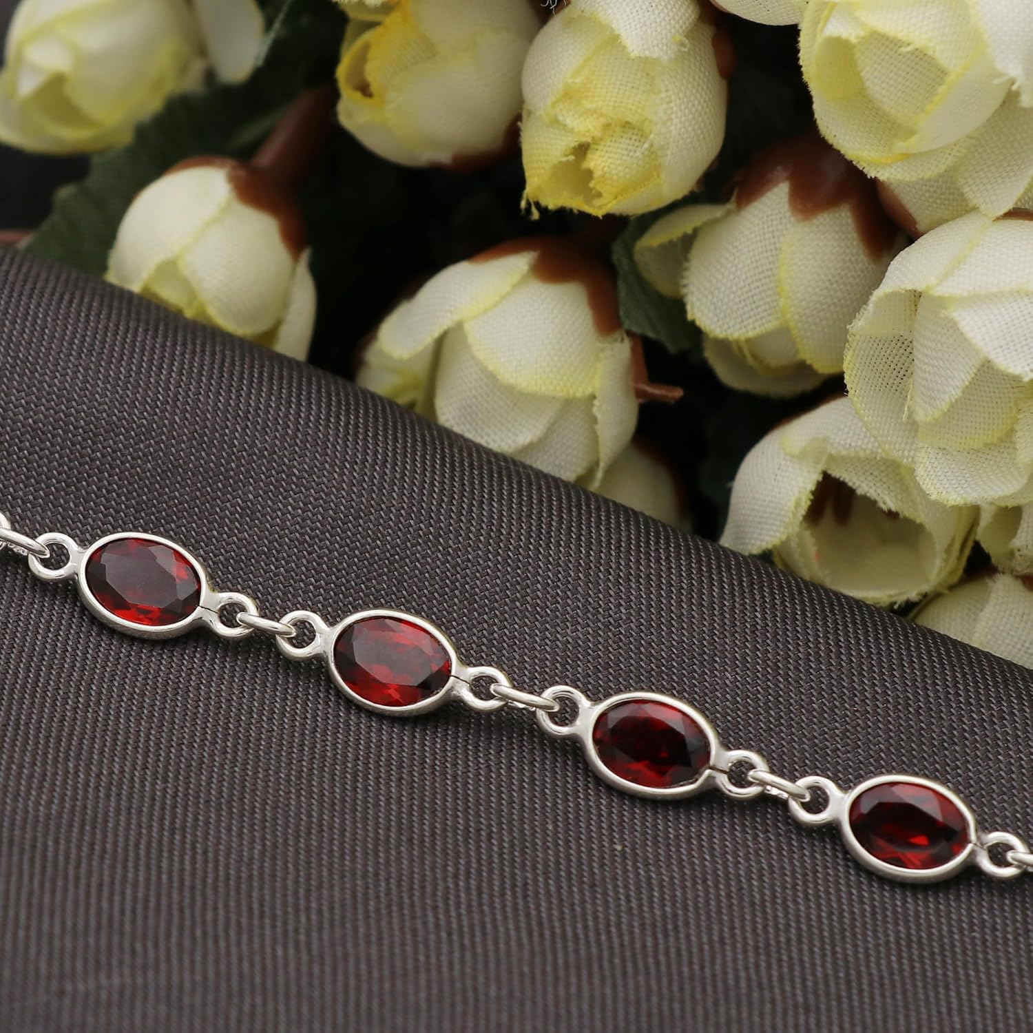 Add timeless elegance to your collection with this Sterling Silver Red Garnet Tennis Bracelet for Women, beautifully handcrafted from genuine 925 sterling silver. Each piece is adorned with carefully set red garnet gemstones, radiating rich color and sophistication. The sleek and refined design makes it perfect for both daily wear and special occasions. Crafted with precision, this bracelet combines luxury with durability. The secure clasp ensures a comfortable fit, while the smooth finish enhances its shine and elegance. The garnet gemstone, symbolizing love and energy, adds a meaningful touch to this classic piece. Lightweight, hypoallergenic, and beautifully polished, this bracelet is an ideal gift for her — perfect for birthdays, anniversaries, Valentine’s Day, or festive celebrations. Presented in elegant packaging, it’s a timeless expression of grace and craftsmanship