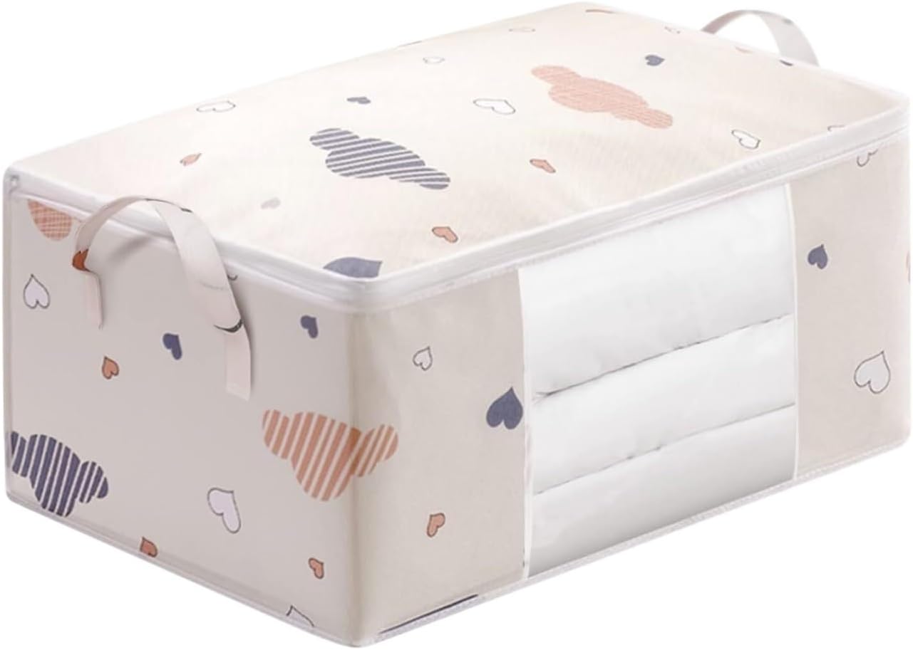 Spacious and Versatile: Great for storing a variety of items such as quilts, clothes, blankets, towels and pillows, designed to save space to the greatest extent, easy to carry and move.Product name: storage bagProduct Size:50L (55*35*25cm)70L (60*40*30cm)Fabric: Non-wovenProduct List:1 clothing storage bag (not including other display items)Foldable: Foldable clothing organizer, It is suitable for dormitories, attics, basements and bedrooms, etc. The beautiful design is also suitable for room decoration.Beautiful and Practical: A good helper for space storage and organization, wipe clean with a damp cloth or hand wash.