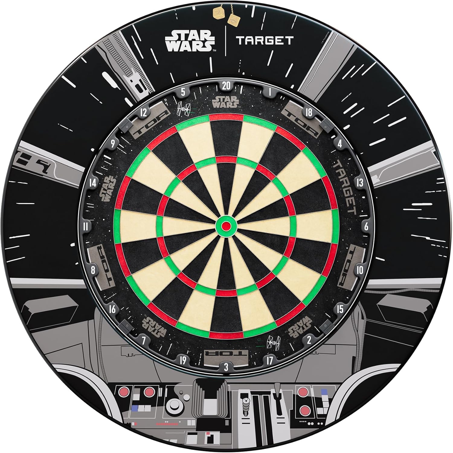Discover Target Darts’ TOR Dartboard, constructed with 215-MDG premium Madagascan sisal, the board offers exceptional self-healing properties, ensuring it remains in top condition through extensive play. Its sanded surface boasts a smooth, flawless finish with bold colours and graphics that enhance visibility and accuracy. The durable stainless steel spiderweb structure reduces bounce outs, while the Peak-Fix lock and level system provides secure mounting on any surface, even uneven walls, thanks to adjustable feet. Featuring the innovative and modern 36XTEN rotational number ring, the TOR Dartboard allows for 10 smooth rotations at 36 degrees per turn, maintaining a consistent and professional appearance. The pack contains 1x TOR Dartboard, and 1x Wall Fixing Kit. Also available Luke Littler World Champion Board and Surround or STAR WARS | TARGET Millennium Falcon Board and Surround.