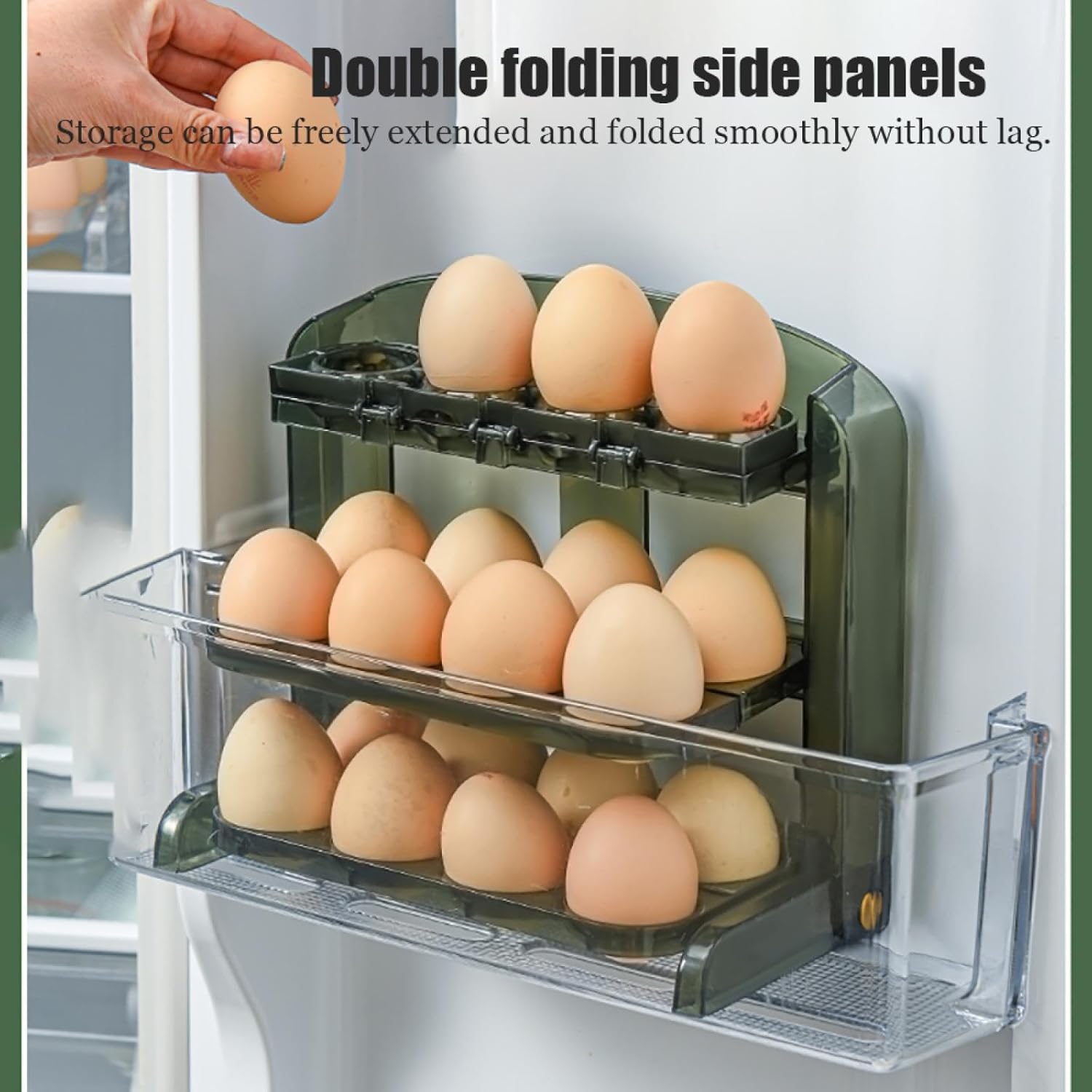 Specification:Name: Egg storage boxMaterial: PETSize: 23*20.5*11cmColor: greenCapacity: three layers (can store 24 eggs)Package includes: 1*Egg storage box