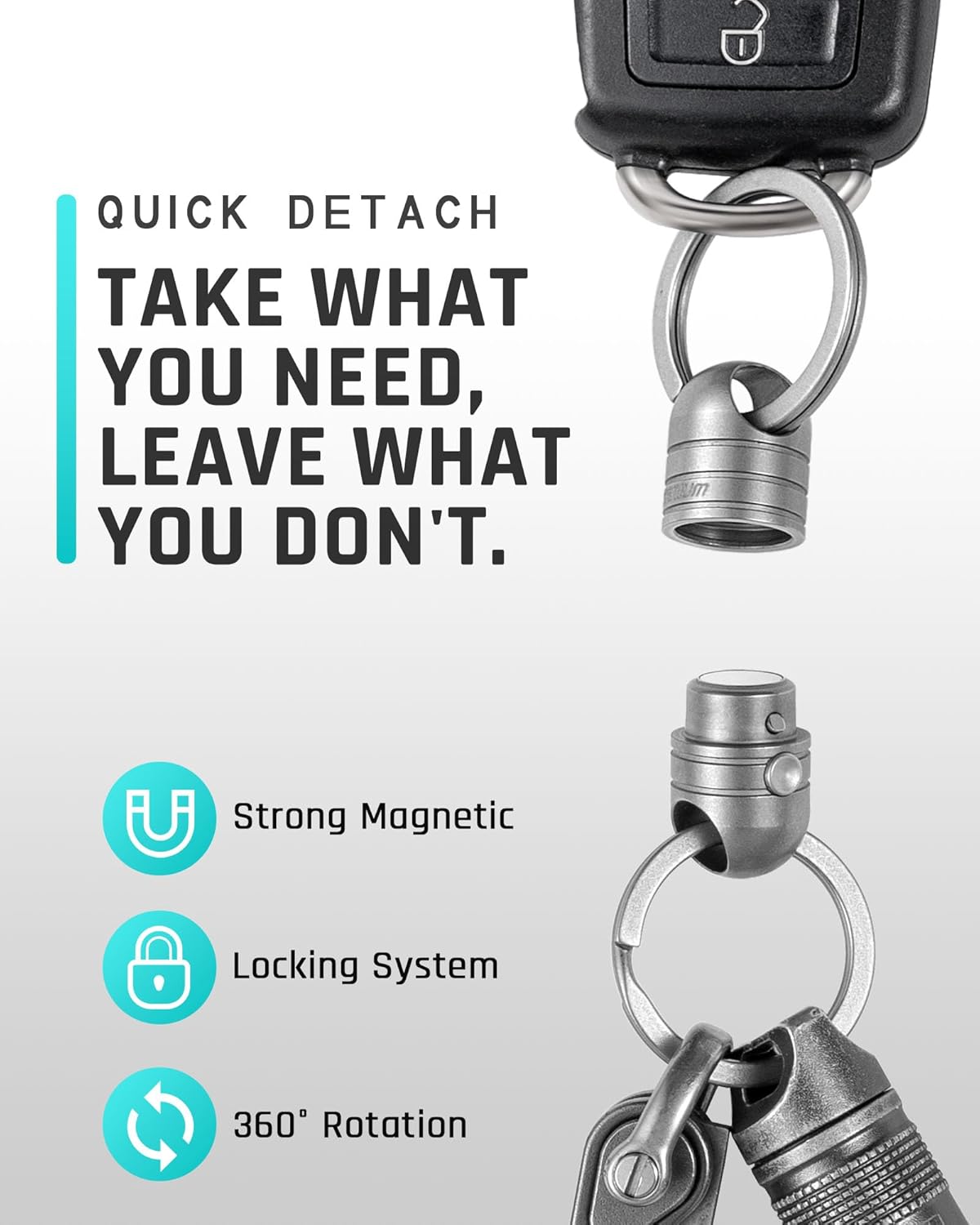TISUR Titanium Quick Release Keychain, Retractable Key Chain Detachable Keychain Clip, Pull Apart Quick Detach Key Rings for Keychains, Key Chains Gifts for Men Women